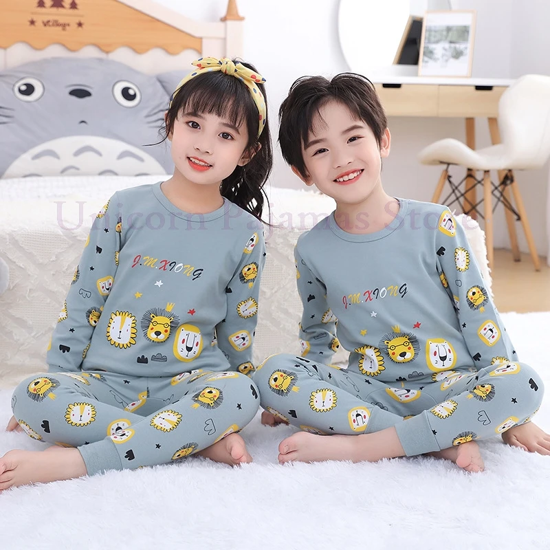 Пижамный комплект для девочек и мальчиков, мультяшный тигр, Лев, животные, детская одежда, костюмы, мягкая хлопковая Пижама, одежда для сна для детей
