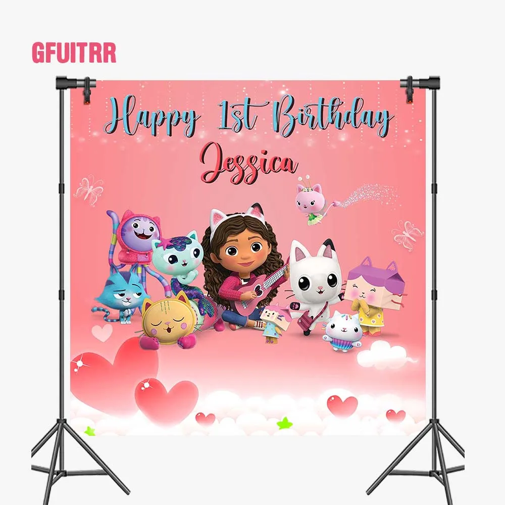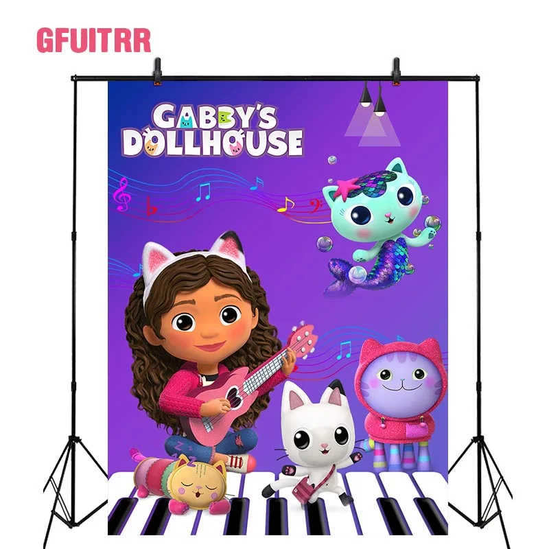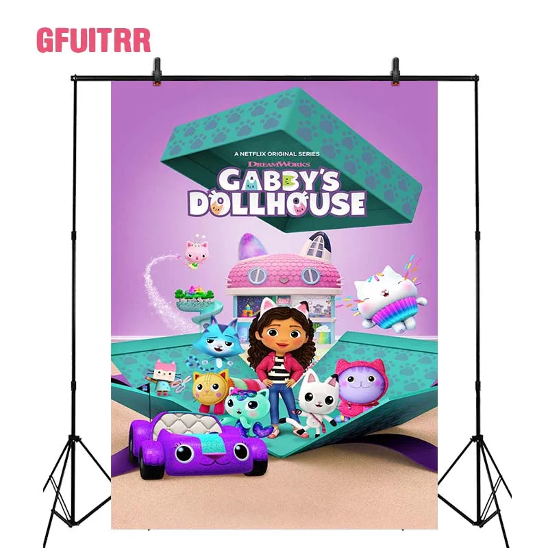 GFUITRR Gabby Фото фоны для кукольного домика для девочек день рождения фотографии фоны для детского праздника вертикальный мультяшный постер Фотостудия