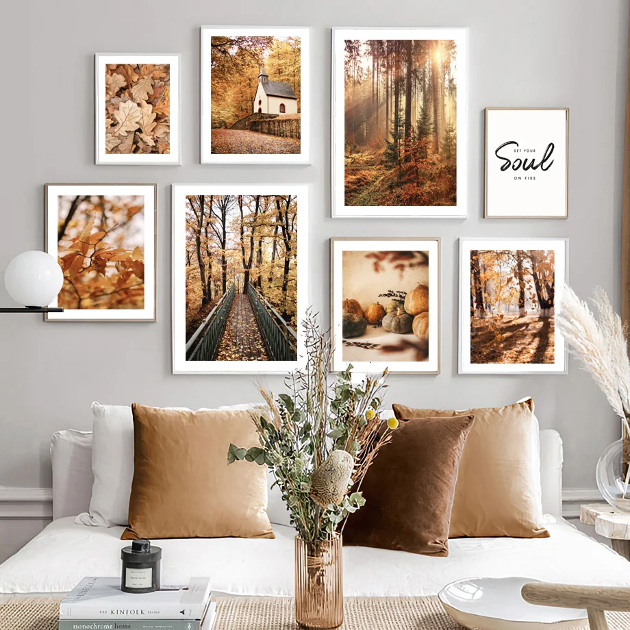 Осенний лиственный кленовый лес, ценовое предложение, Скандинавия, настенная живопись, холст, постеры и принты, скандинавский стиль, декор для гостиной