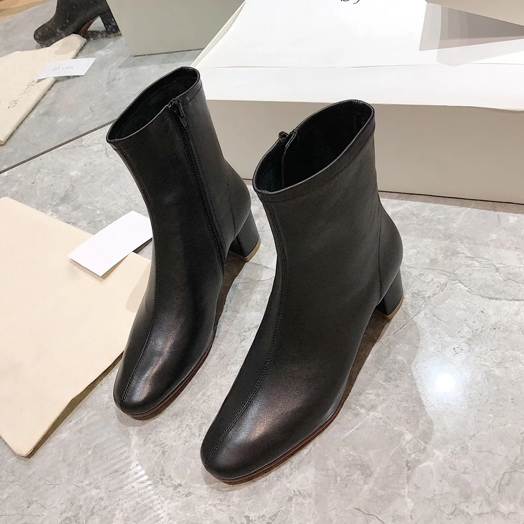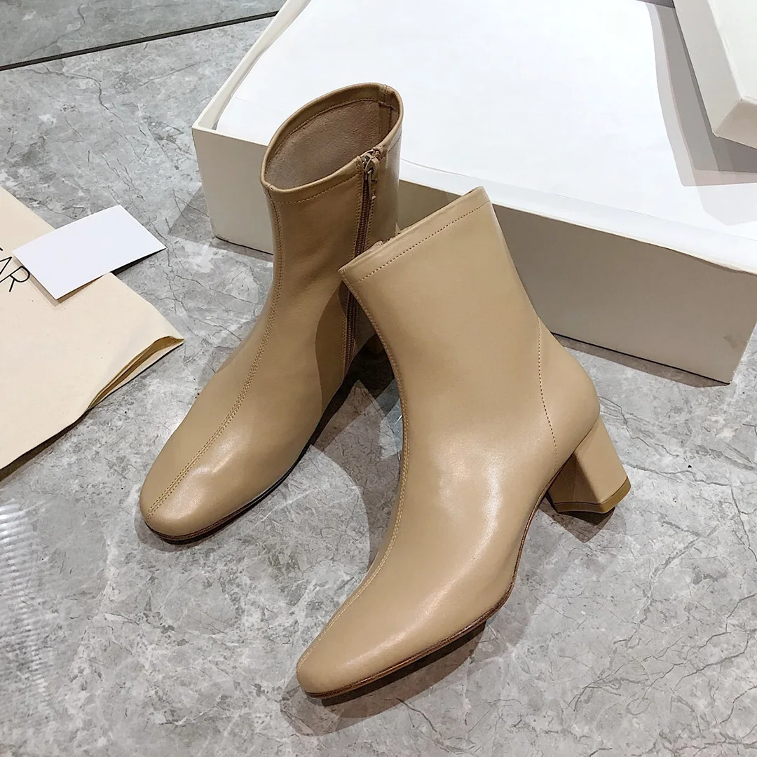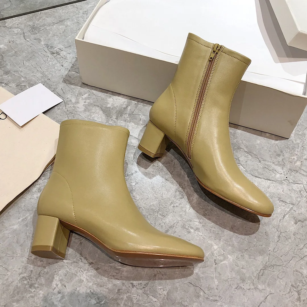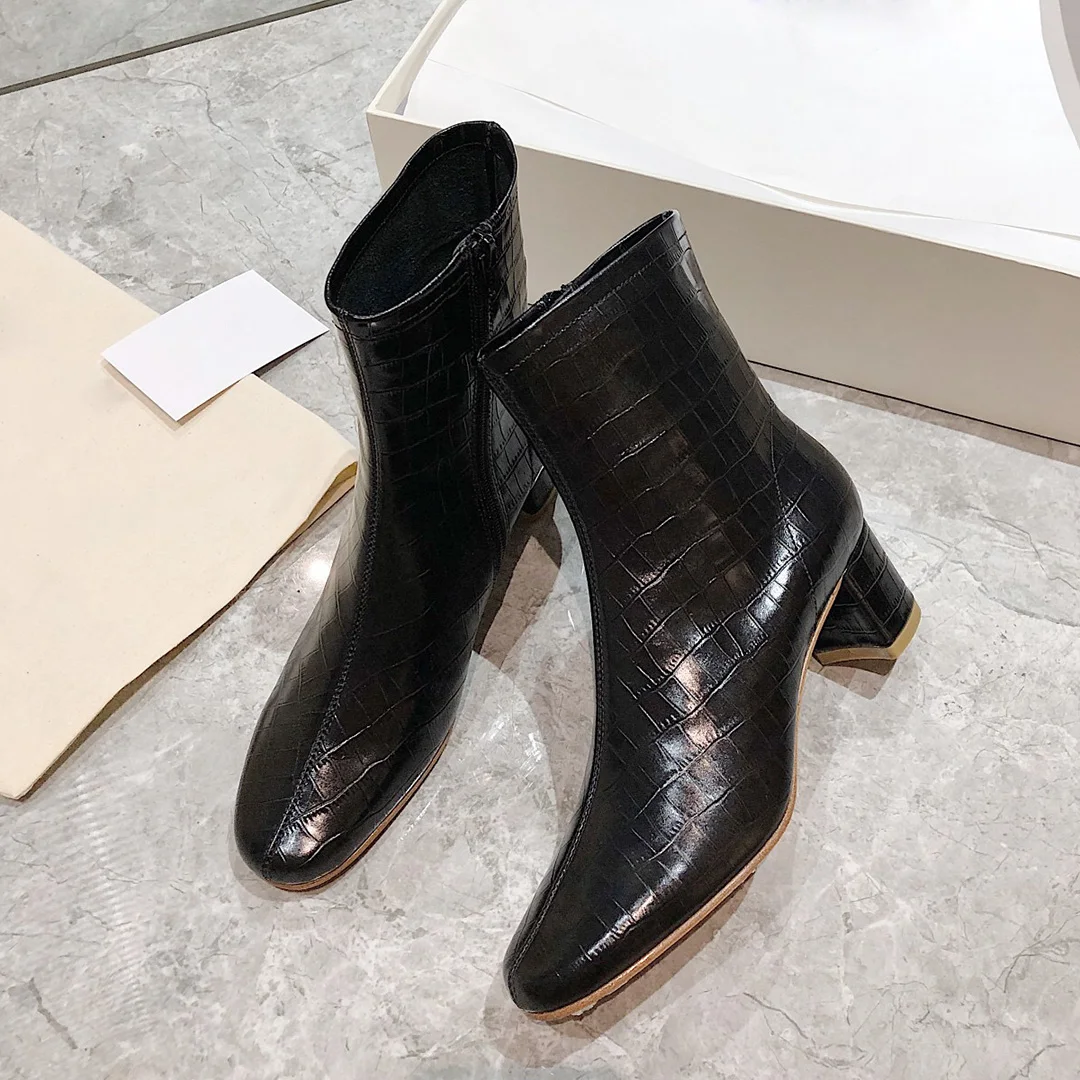 Полусапожки женские из натуральной кожи, на массивном каблуке, с боковой молнией, осень 2021