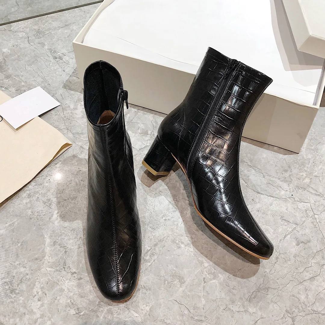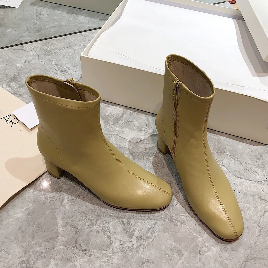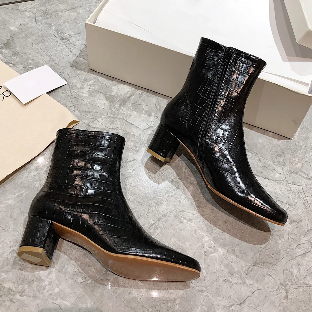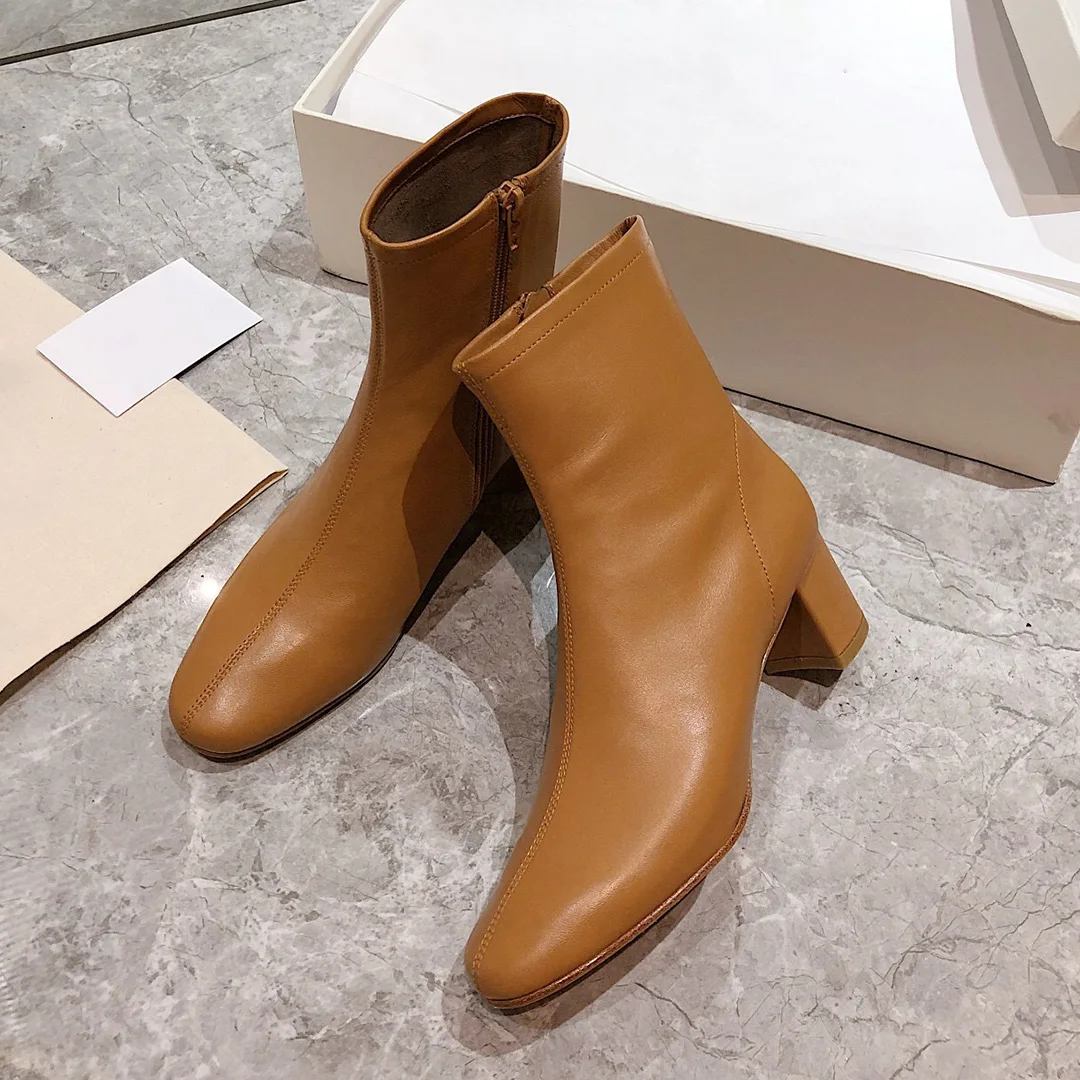 Полусапожки женские из натуральной кожи, на массивном каблуке, с боковой молнией, осень 2021