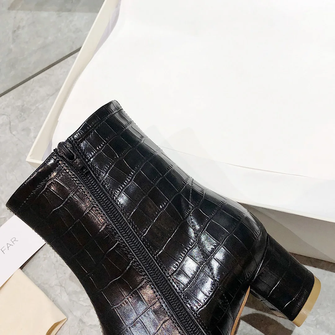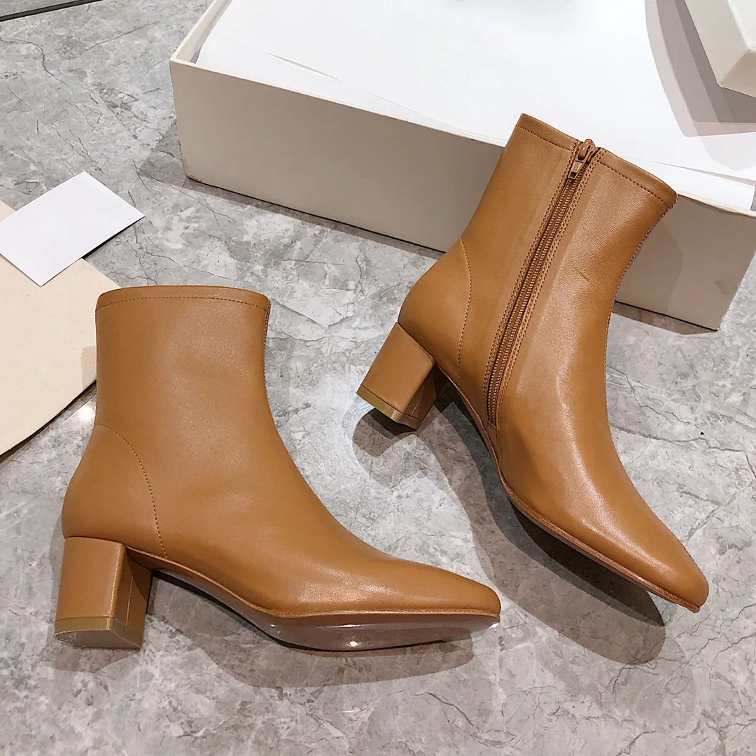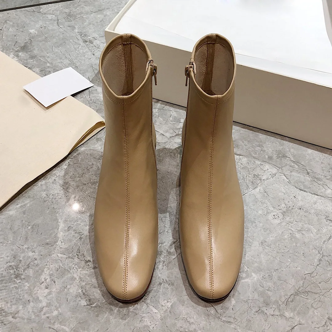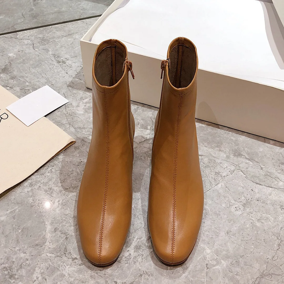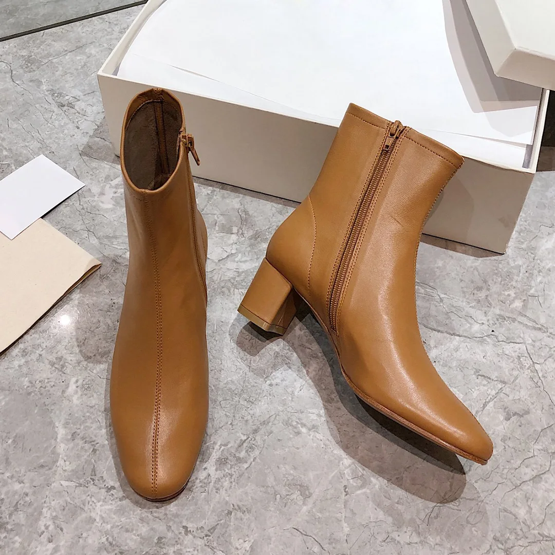 Полусапожки женские из натуральной кожи, на массивном каблуке, с боковой молнией, осень 2021