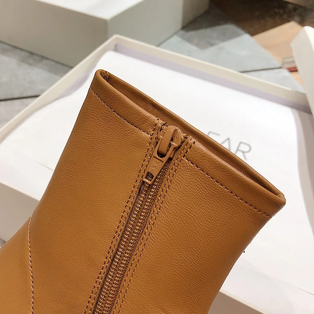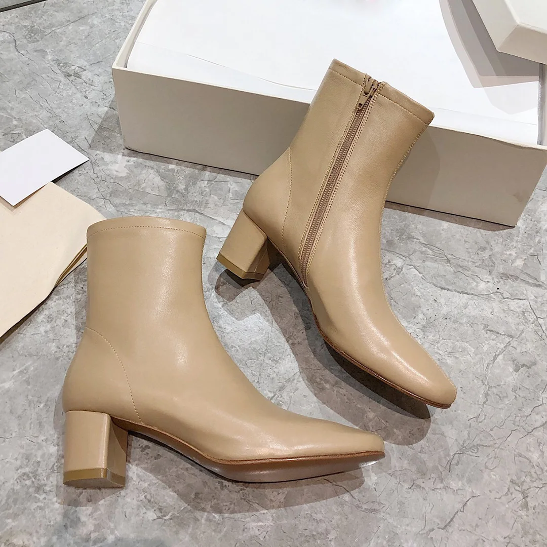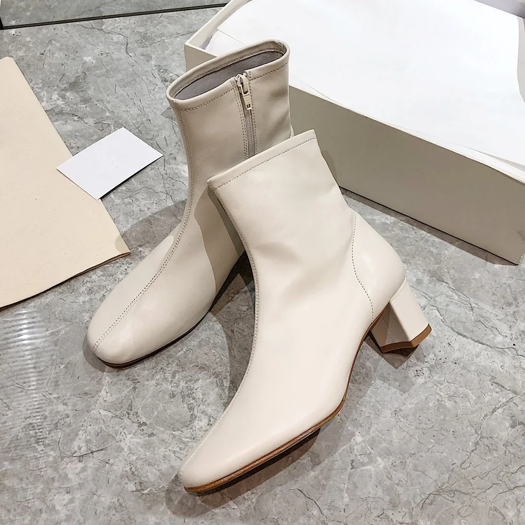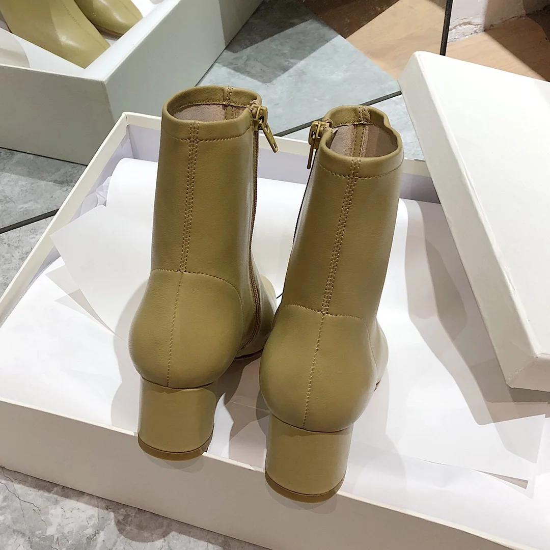 Полусапожки женские из натуральной кожи, на массивном каблуке, с боковой молнией, осень 2021