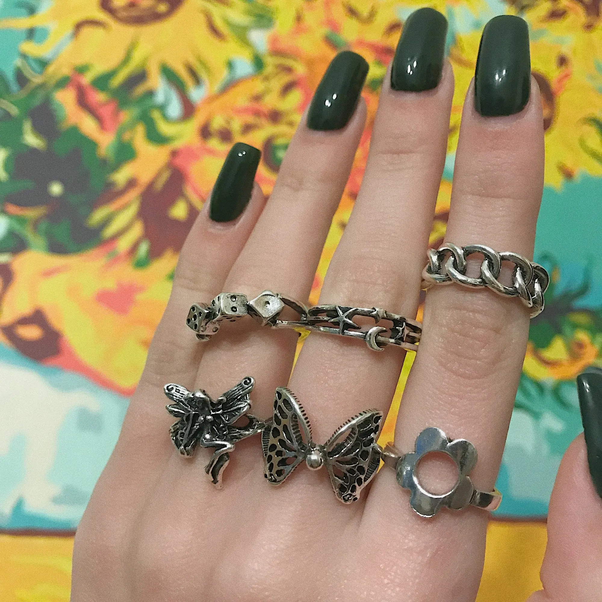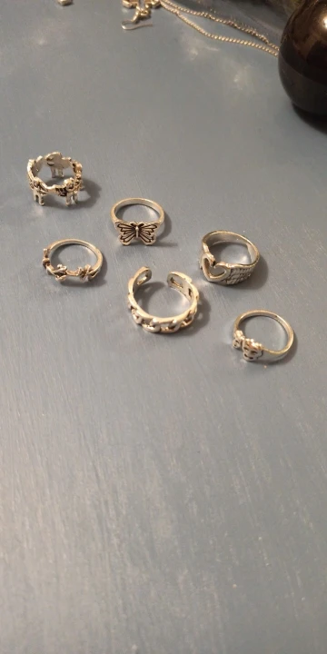 кольца классные, но большеваты, одно кольцо можно регулировать, а остальные я думаю прорежу чтобы были по размеру