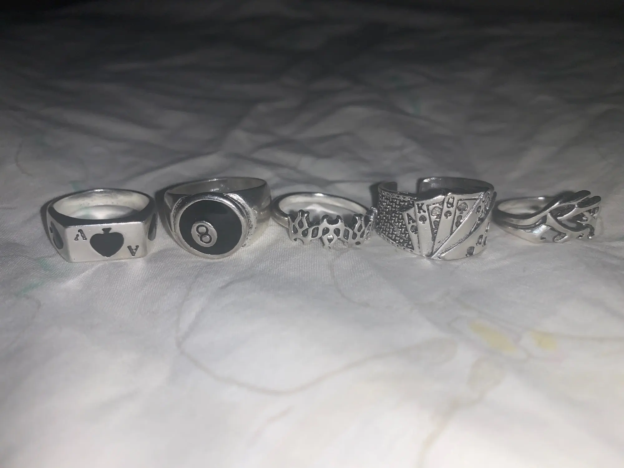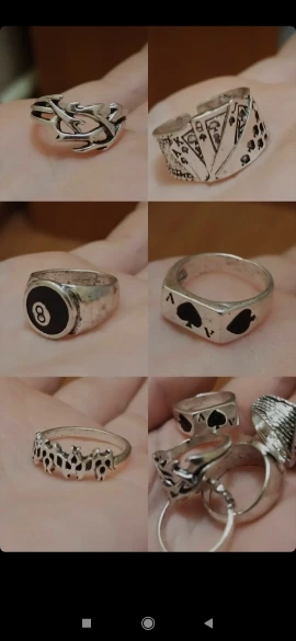 качество у колец хорошее. Жаль что есть очень большие кольца которые спадают с пальцем, а так вообще и целом товаром довольна)