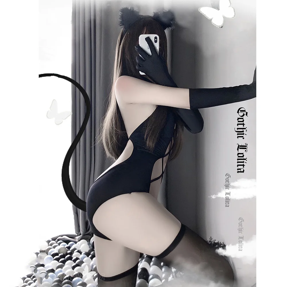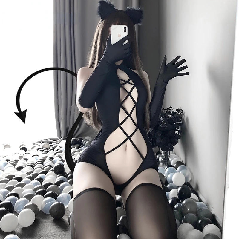 Сексуальное черное боди с вырезами, костюмы для косплея для женщин, открытый передний боди для ролевых игр, цельнокроеный костюм