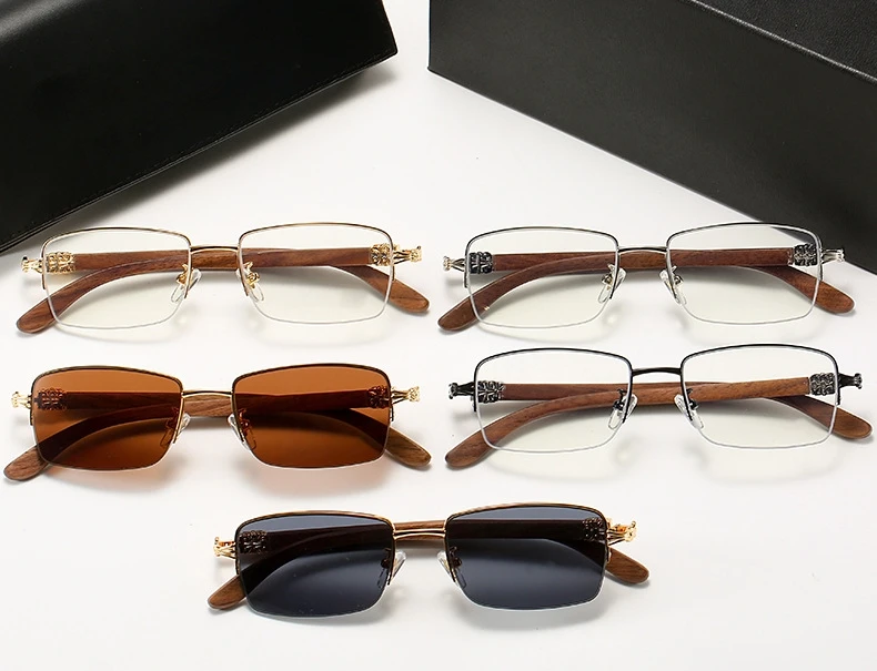 HDCRAFTER сплав деревянная оправа для очков Мужские квадратные оптические очки для близорукости по рецепту для женщин и мужчин полуоправа Безвинтовые очки
