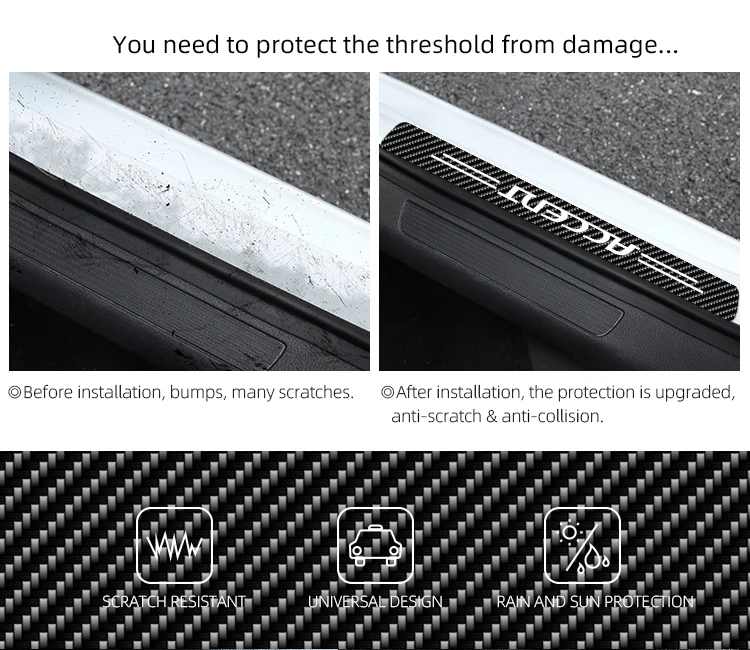 4 шт. автомобильные водонепроницаемые наклейки из углеродного волокна, защитные противоскользящие наклейки на дверь для Hyundai Accent Tucson Solaris I30 Creta i40