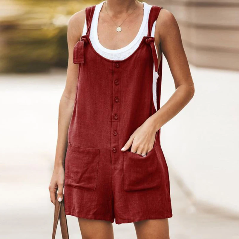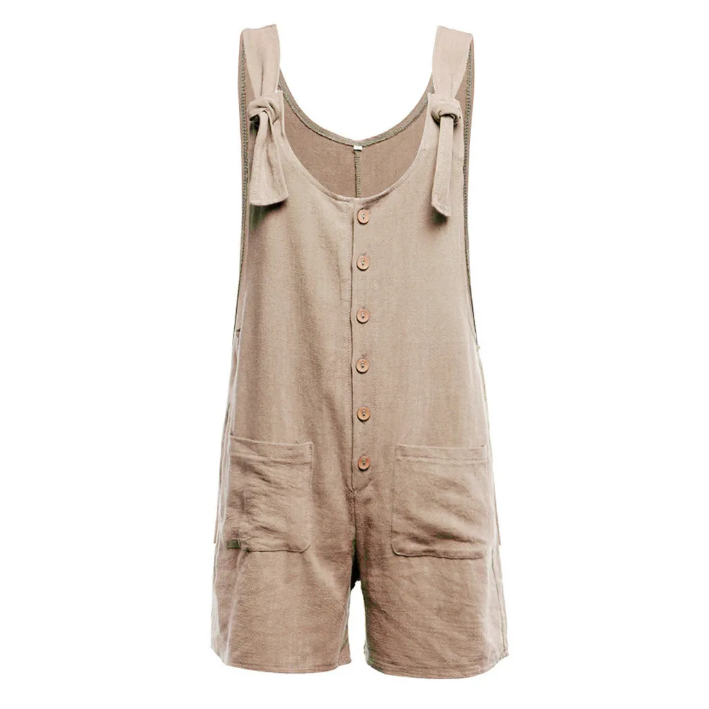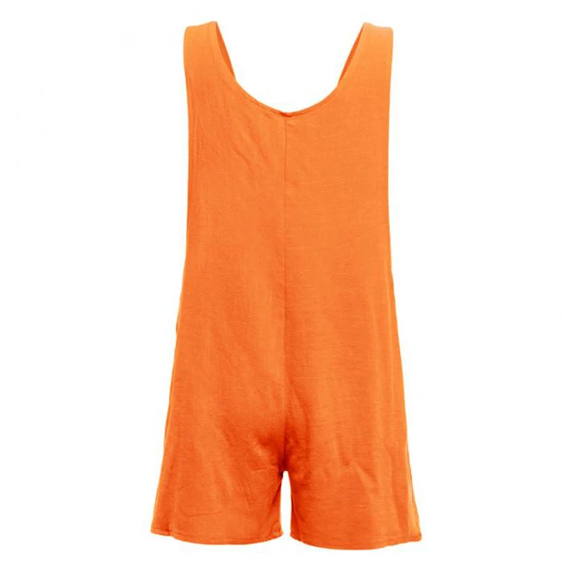 Женский свободный комбинезон без рукавов, повседневный однотонный комбинезон на пуговицах с карманами и подтяжками, короткие брюки, комбинезоны с широкими штанинами, на лето