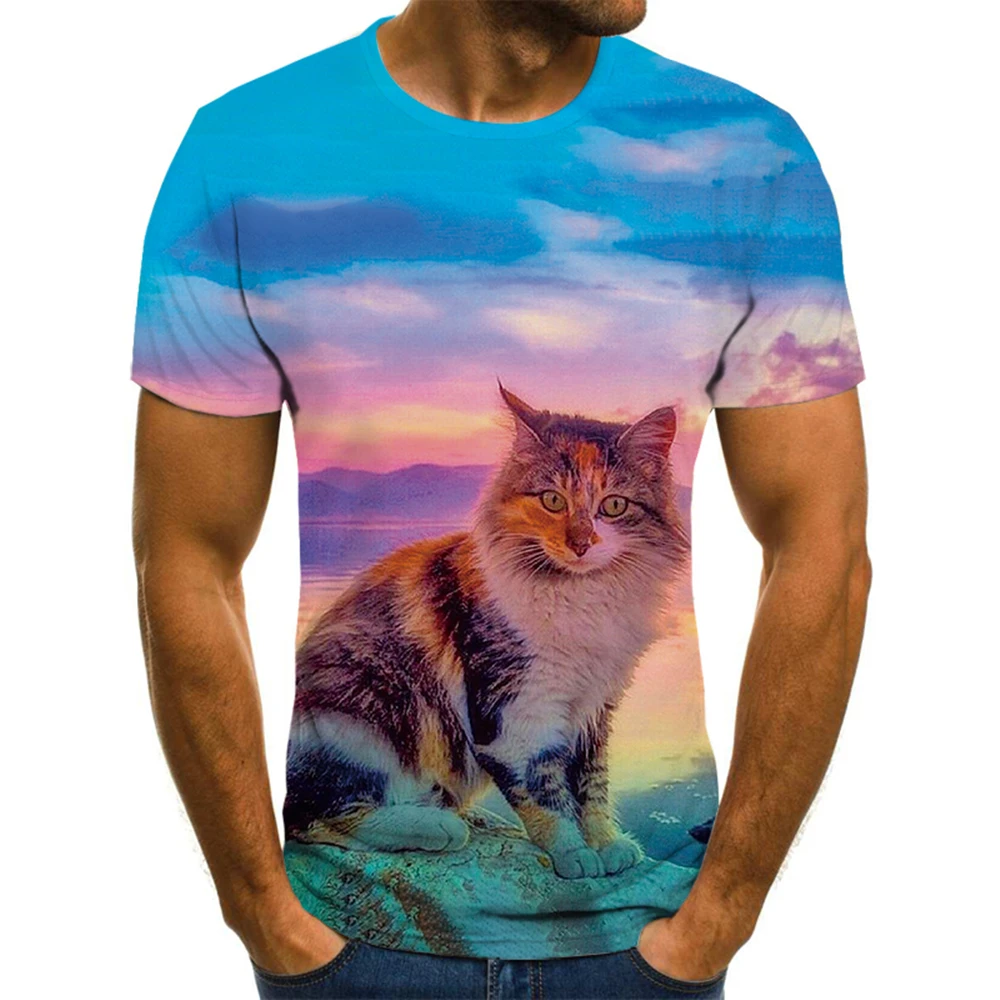 Новинка 2021, модная Новая мужская футболка с 3D принтом, кошка пиц...