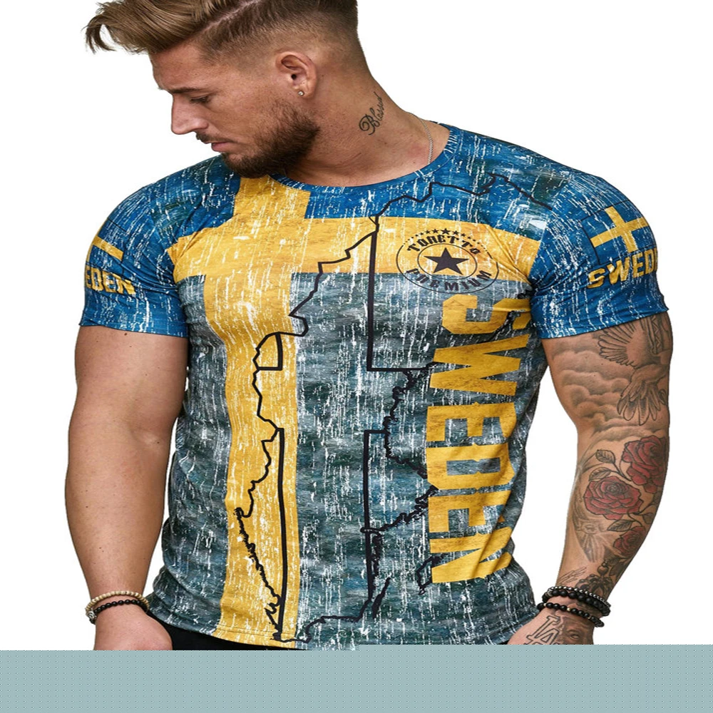 Мужская футболка sSleeve, летняя футболка с 3D татуировкой для фитн...
