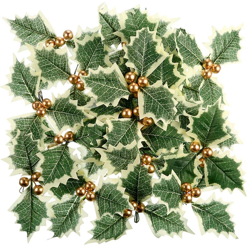 1102030 шт. Шелковый цветок, искусственные листья, искусственные ягоды Падуба, красная вишня, маленькие фрукты, Рождественское украшение для дома
