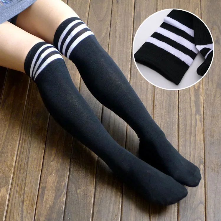Сексуальные женские гольфы в черно-белую полоску, женские гольфы выше колена, чулки, нижнее белье для студентов JK, теплые гольфы для девочек
