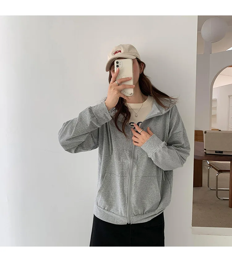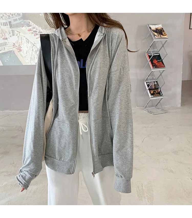 Серая толстовка с капюшоном, Женская весенне-осенняя тонкая свободн...