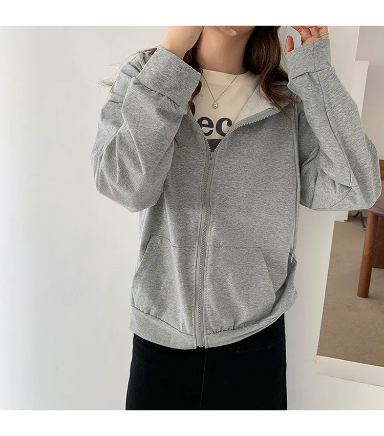 CGC 2021 Осень Harajuku Свитшот женский однотонный корейский стиль на молнии толстовки оверсайз Женская куртка повседневные топы женская верхняя одежда
