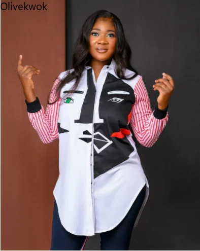 Olivekwok 2021 женские модные Лоскутные рубашки с длинным рукавом отложным воротником уличная одежда осенние однотонные женские топы