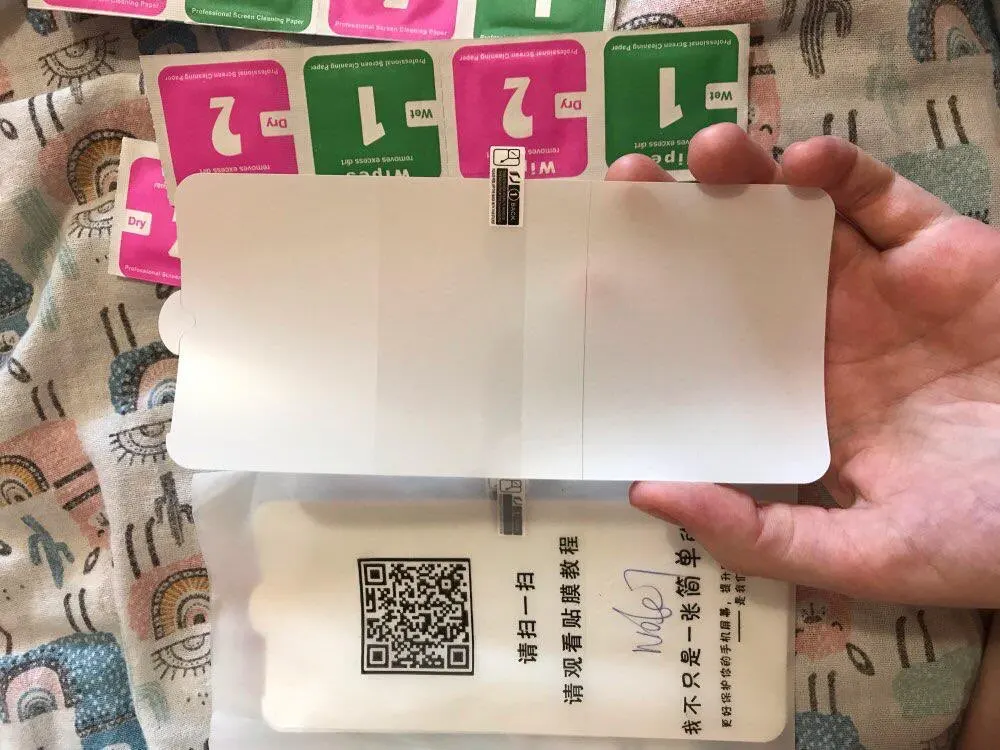 "Сегодня я получил свою посылку. Я был приятно удивлен. Пленки идеально упакованы отдельно. Салфетки И карта, чтобы вынуть воздух при наклеивании пленки. Все это упаковано в коробку из пены. Я еще не клеил его, но мне очень понравилось."