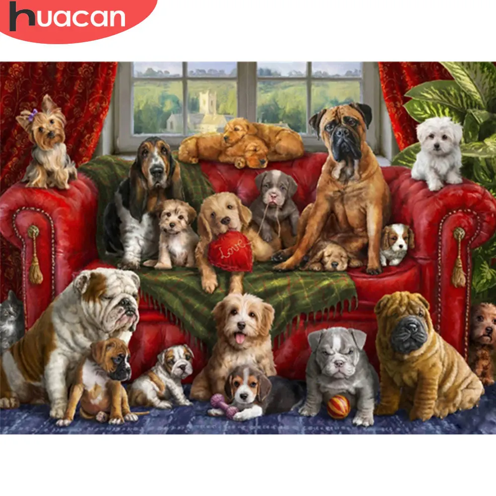Алмазная живопись HUACAN 5D сделай сам, собака, кот, настенное искусство, Декор, полная квадратнаякруглая Алмазная вышивка, животные, искусство