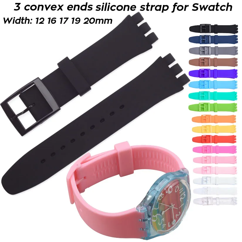 Силиконовый ремешок для наручных часов образец ремешка 12 мм 16 мм 17 мм 19 мм 20 мм для часы Swatch группа красочные каучуковый ремешок Пластик пряжка