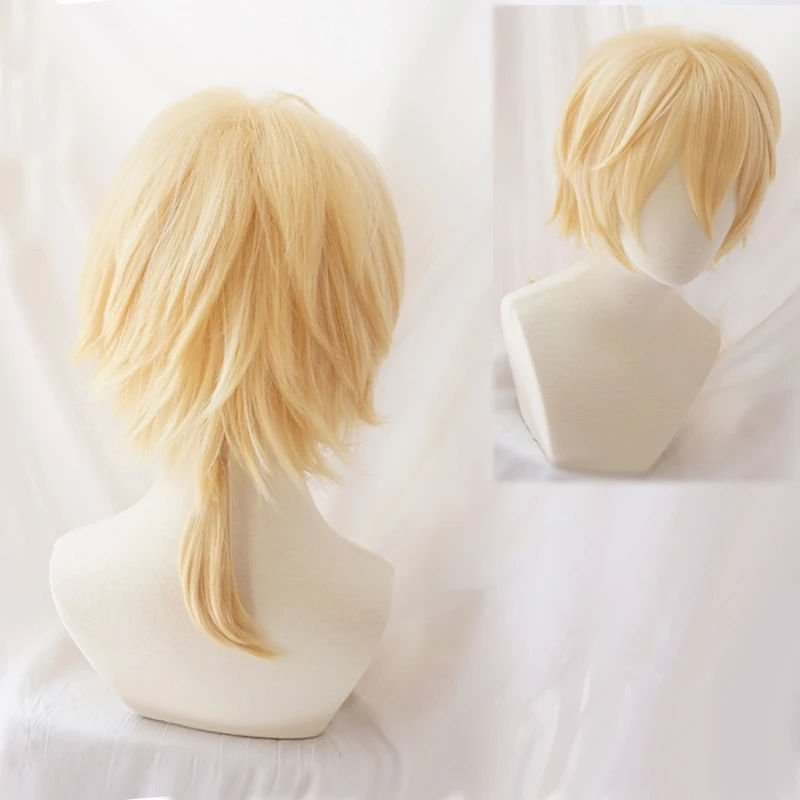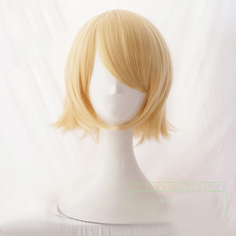 Короткий золотой термостойкий синтетический парик для косплея + трек-код + бесплатная шапочка для парика
