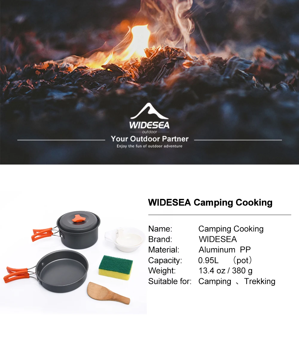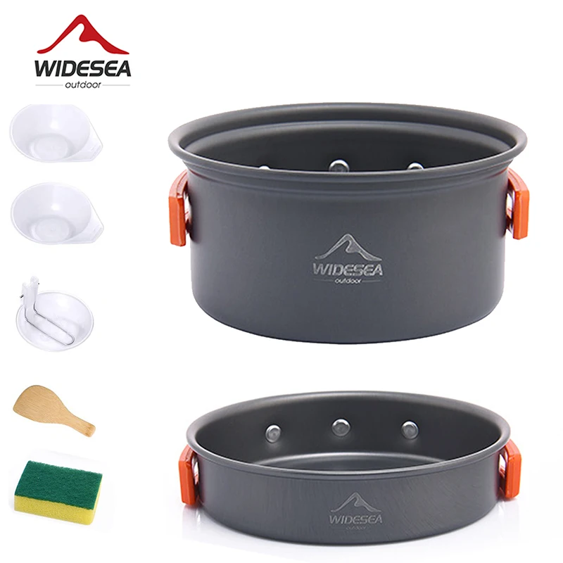 Походная посуда Widesea, алюминиевая посуда для открытого воздуха, сковорода, кастрюля, столовые приборы, принадлежности для пешего туризма, пикника, кемпинга