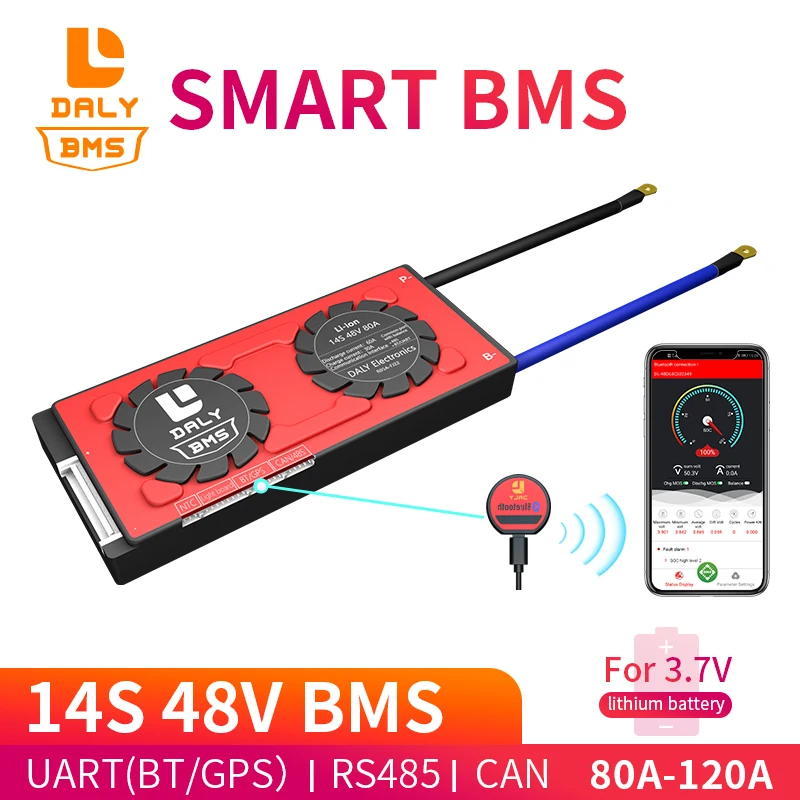 Daly 18650 smart BMS 14S 48V 80A 100A 120A Bluetooth 485 к USB устройству NTC UART программное обеспечение togther Lion LiFepo4 батарея BMS ◆ В настоящее время все умные BMS без водонепроницаемой функции. ◆ Эта ссылка для литий-ионного аккумулятора 14S 48V. Пожалуйста, заполните параметр после размещения заказа, чтобы обеспечить SOC правильной информацией.