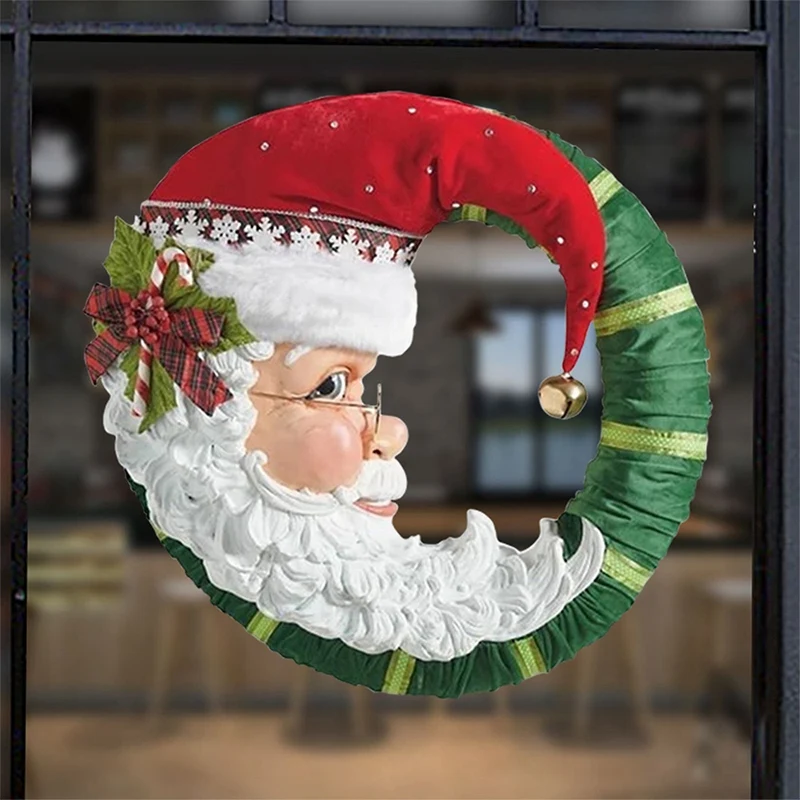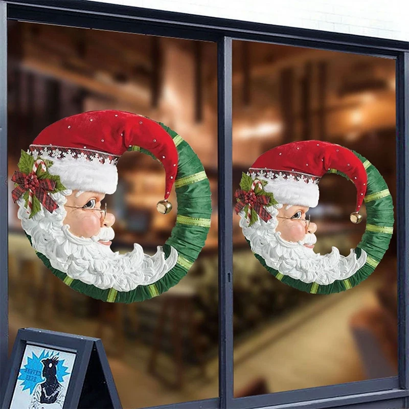 Рождественский венок, наклейка на окно, рождественская елка, Санта-...
