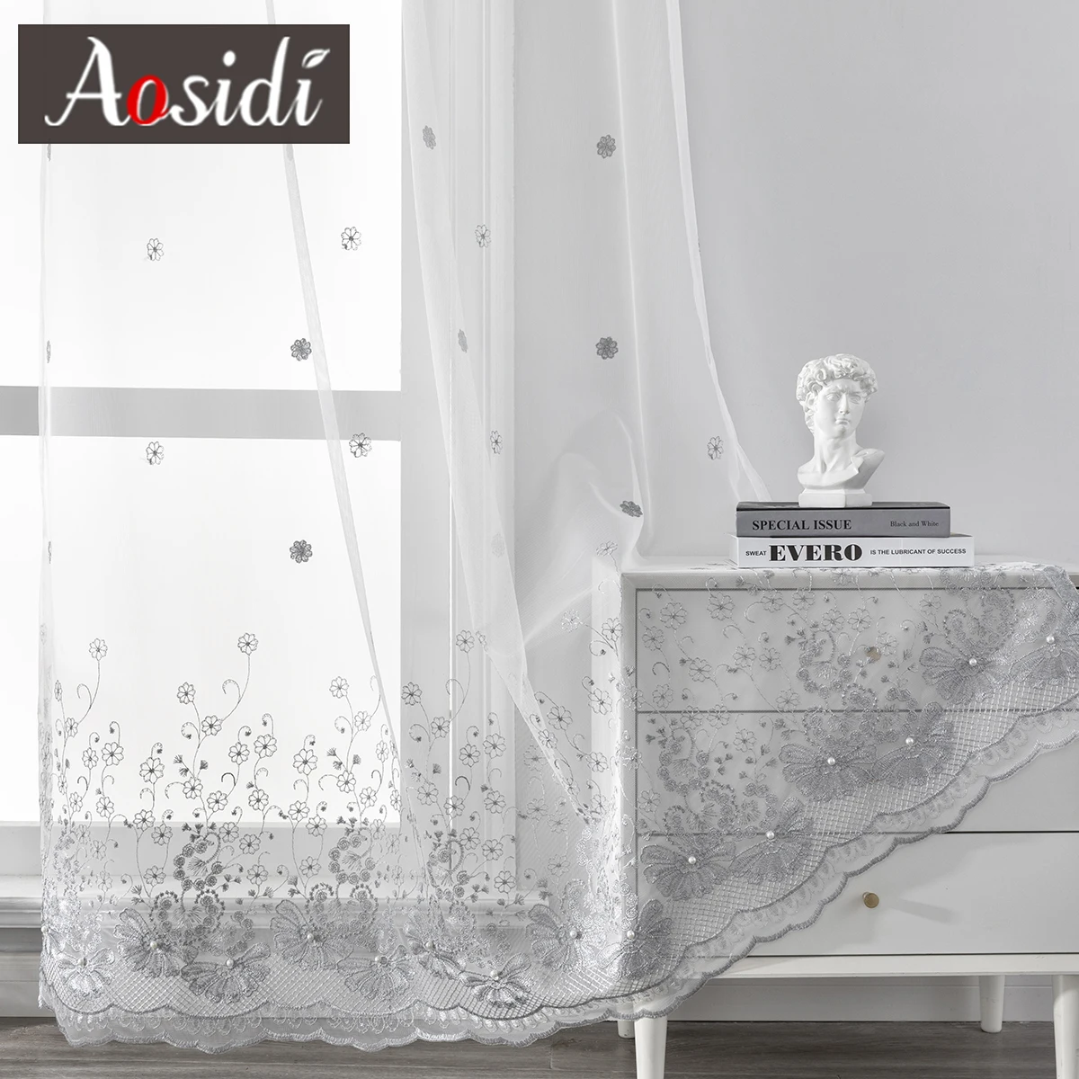 Роскошные прозрачные шторы для гостиной, спальни, тюль для окон, Свадебный декор с вышивкой из вуали, драпировка из бисера