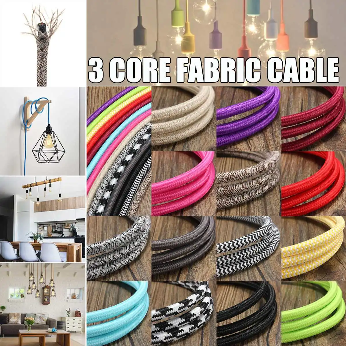 10-метровый 3-жильный 0,75 мм тканевый гибкий шнур питания с тканевым покрытием, винтажный Электрический провод