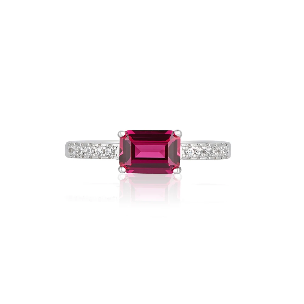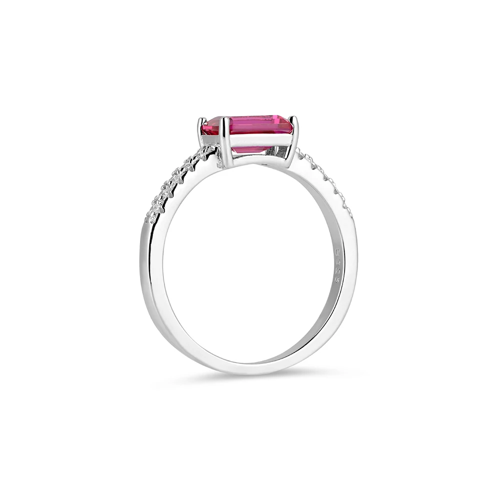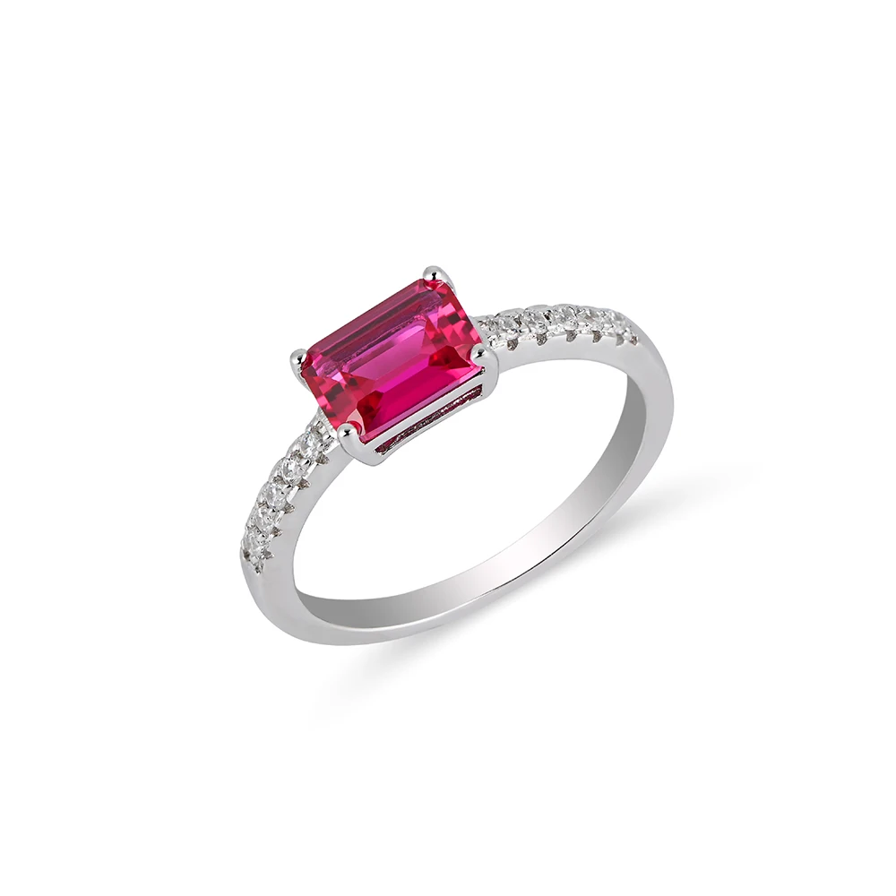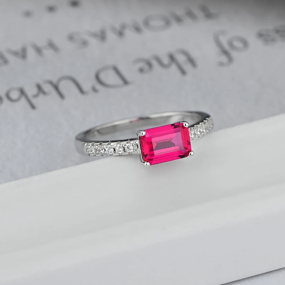 Модные бриллиантовые серебряные кольца с рубином изумрудной огранки для женщин, изящные украшения, геометрическое кольцо с рубином и камнем вечности, подарок на день Святого Валентина