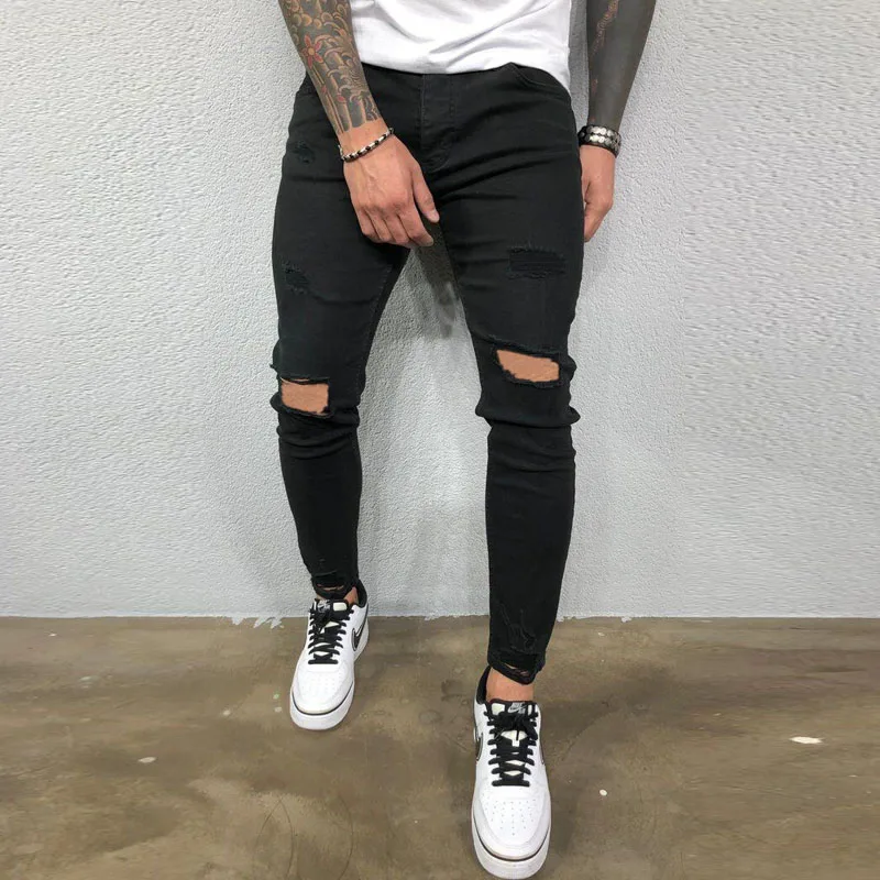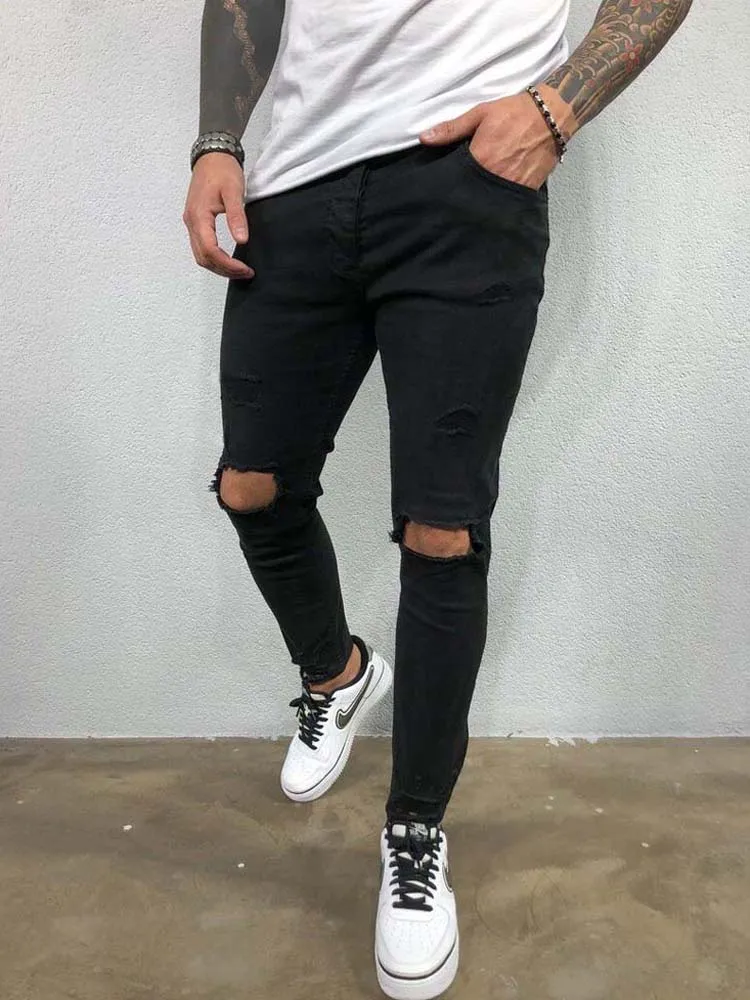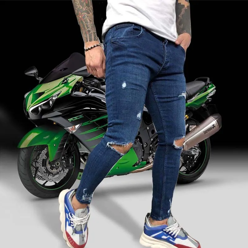 Джинсы-скинни мужские, эластичные, однотонные, рваные, в стиле хип-хоп
