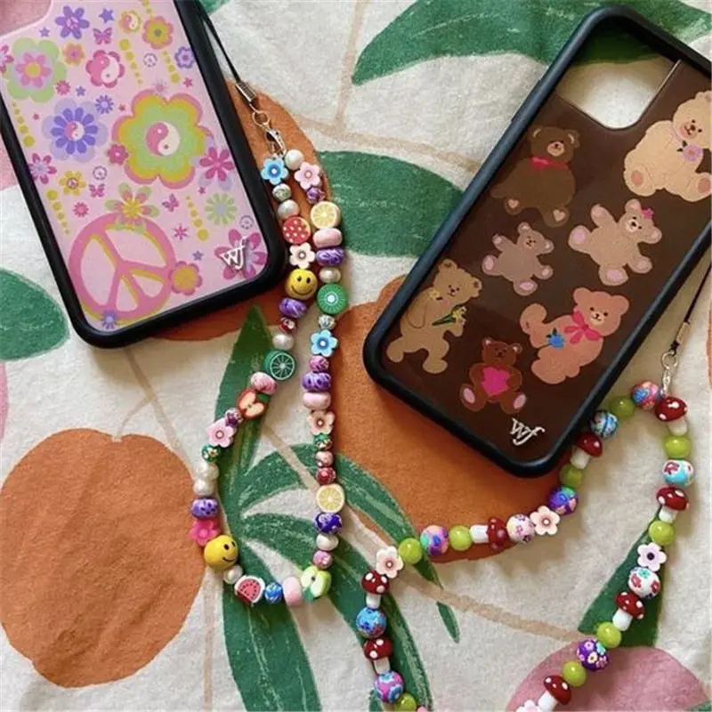 Модные бусины из акриловой глины, цепочка для сотового телефона, ремешок, шнурок, цветные бусины для телефона, подвесной шнур для защиты от потери, цепочка для телефона, ювелирные изделия Y2K