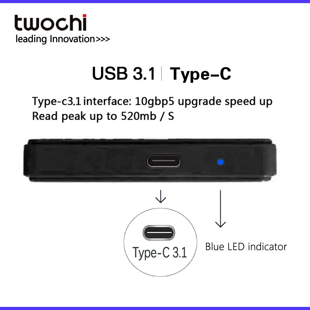 Внешний жесткий диск TWOCHI USB 3.1 Type-C, портативный жесткий дис...