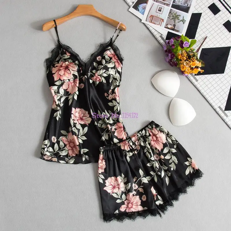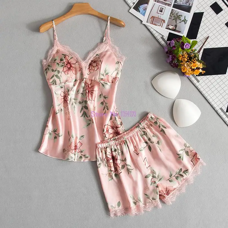 Новинка 2021, женская одежда для дома для девушек, атласная одежда для сна, женская пижама с нагрудными подушечками, пикантные женские пижамы, кружевной комплект из 5 предметов для сна