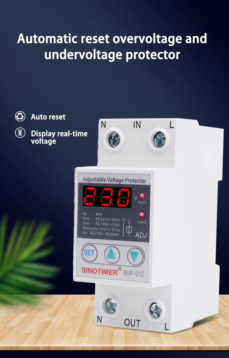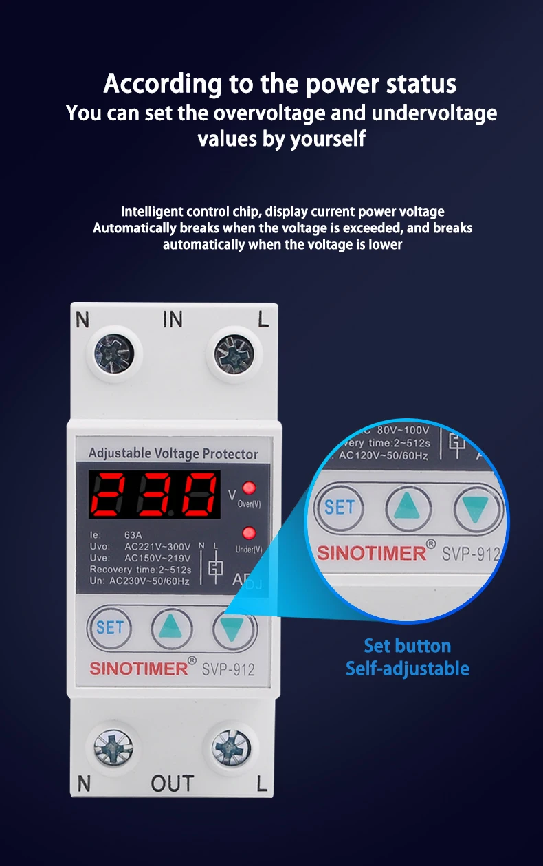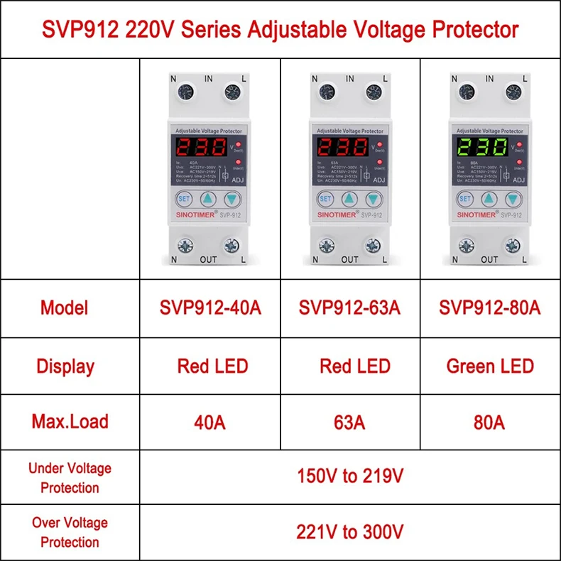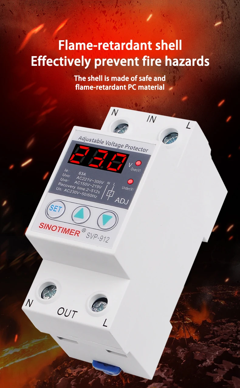 SVP-912 регулируемое 40A 63A 80A интеллектуальное перенапряжение и защита от перепада напряжения реле автоматического сброса
