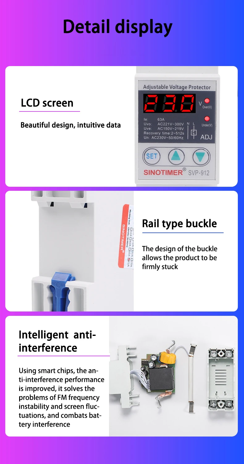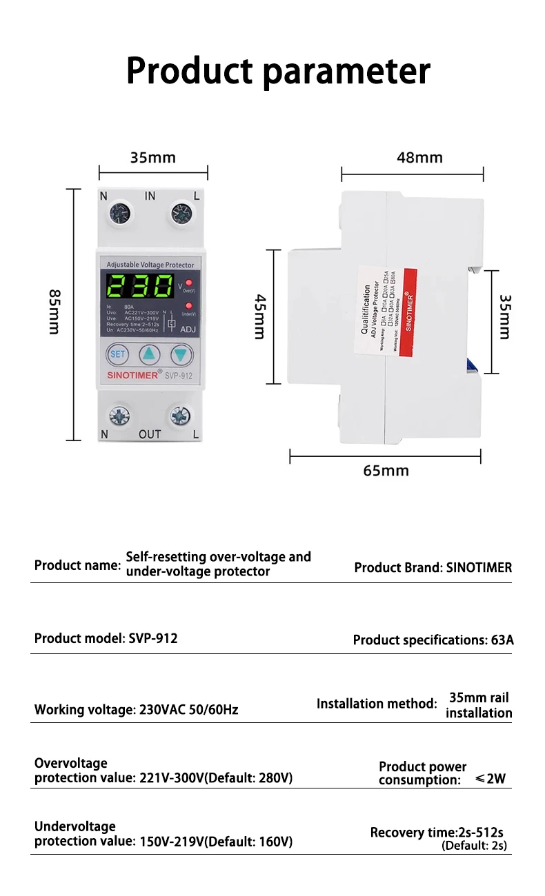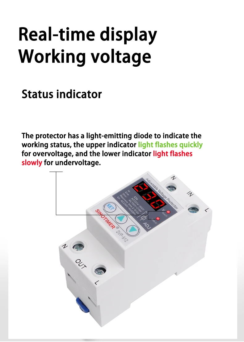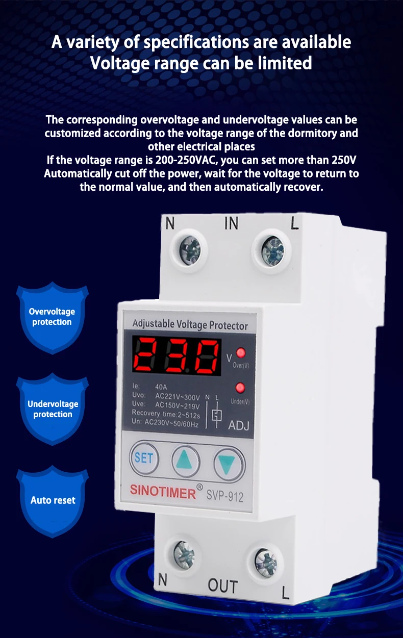 SVP-912 регулируемое 40A 63A 80A интеллектуальное перенапряжение и защита от перепада напряжения реле автоматического сброса