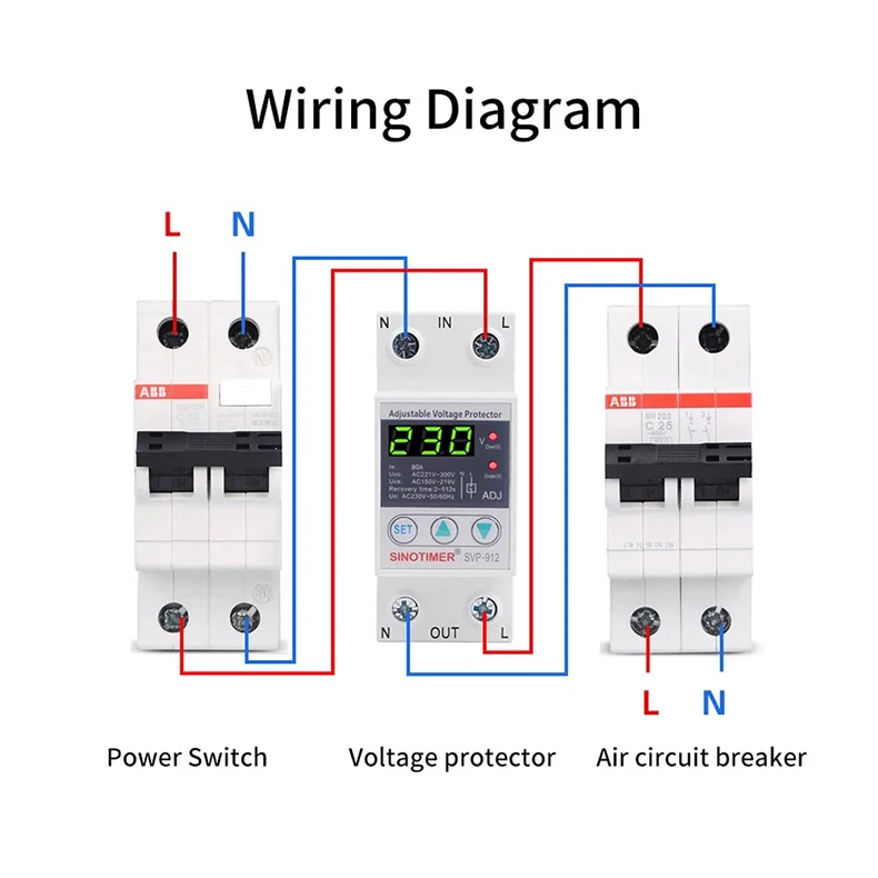 Умный реле превышения напряжения и автоматического сброса, регулируемый 40 А 63 а 80 А