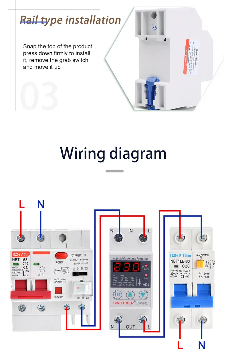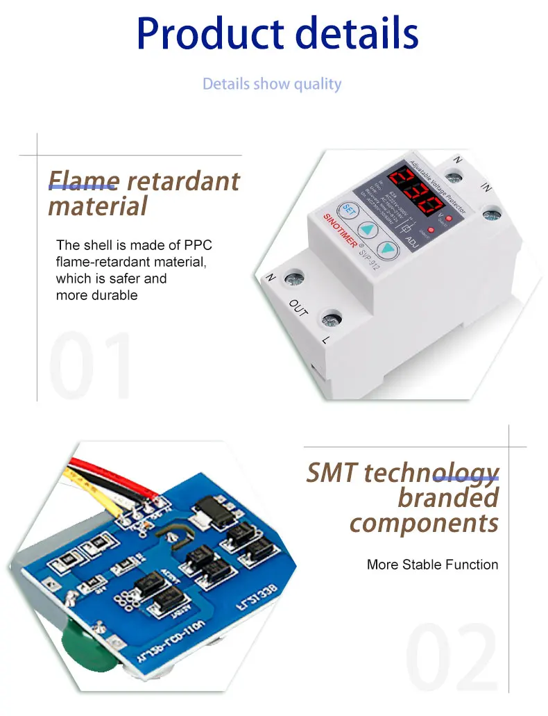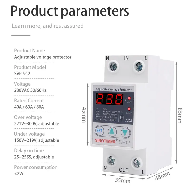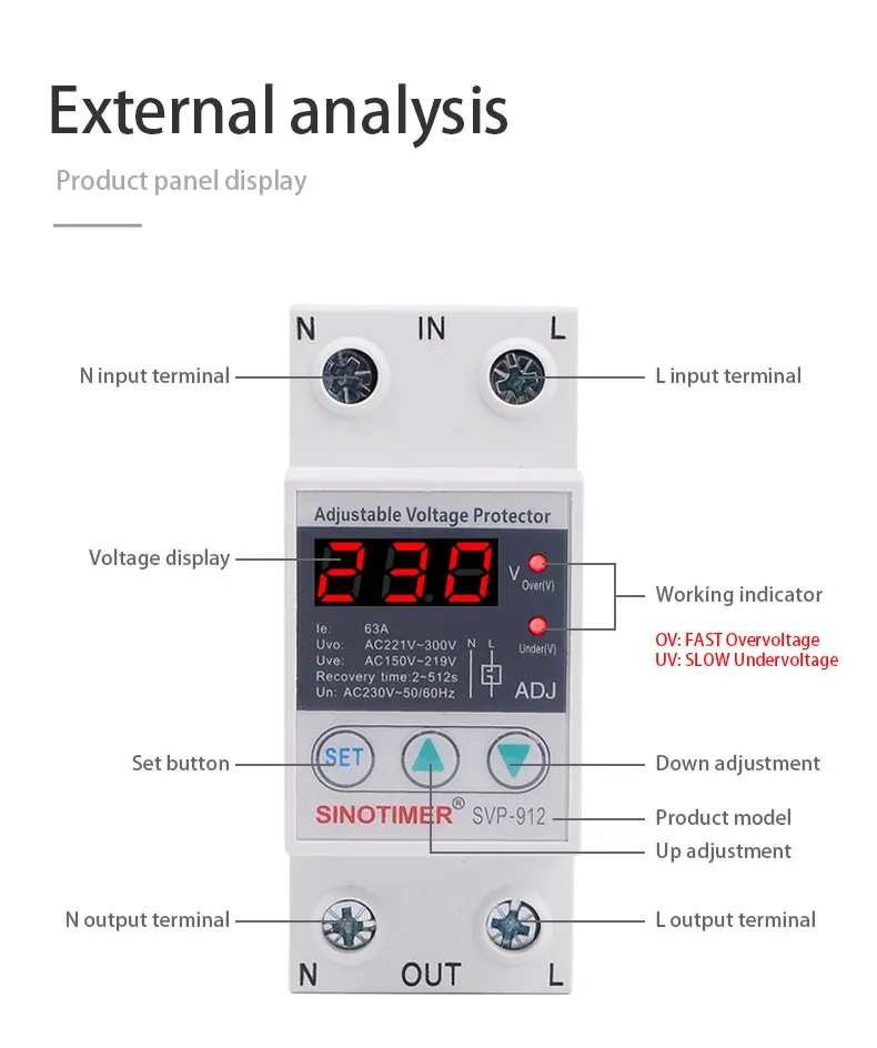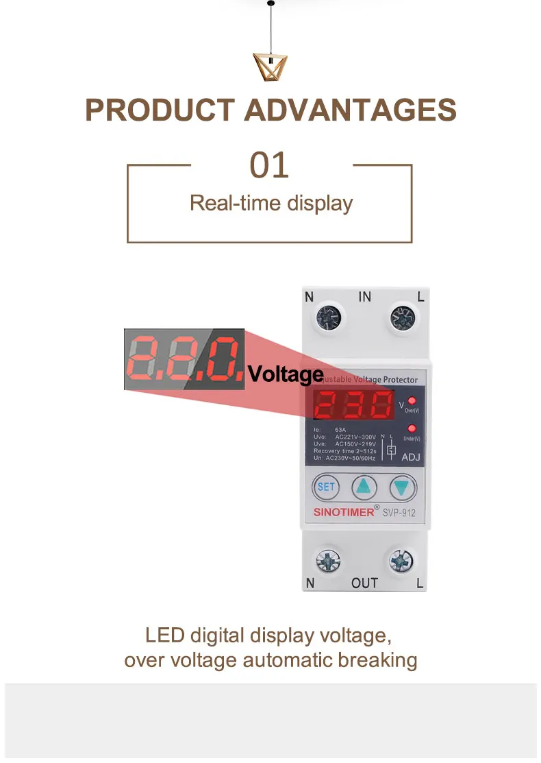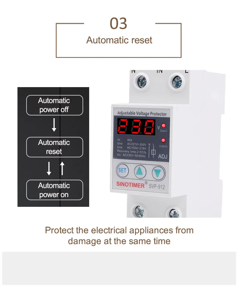 SVP серии SINOTIMER бренд автоматическая защита от перенапряжения и пониженного напряжения подходит для однофазного переменного тока 230 В пер. тока, 50/60 Гц, Номинальный рабочий ток 63A или 80A или меньше нагрузки.