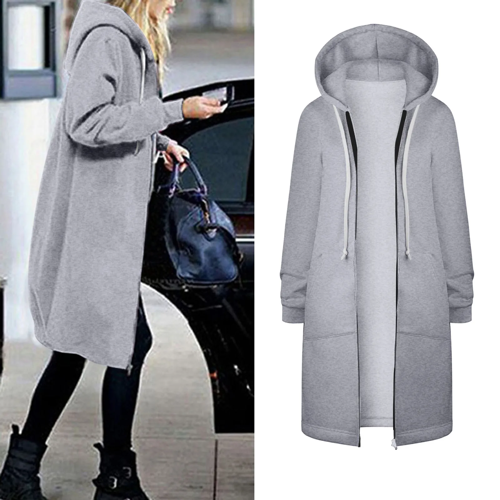 Осень 2021, повседневные женские длинные толстовки, свитшот, куртка с капюшоном на молнии, зимнее пальто с карманами, одежда оверсайз Tops Moletom свитшот