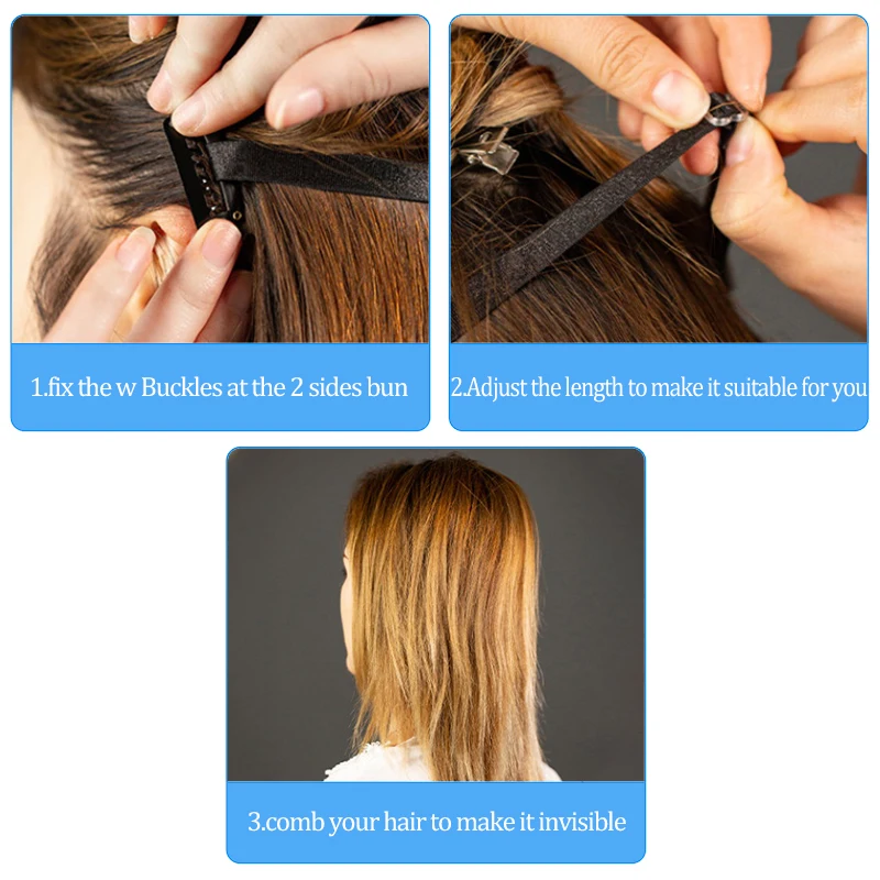Инструкции:1. Закрепите волосы с обеих сторон головы с помощью пуговиц на обоих концах2. Отрегулируйте длину и плотность, чтобы она подошла вам3. Расчешите волосы и сделайте их невидимыми