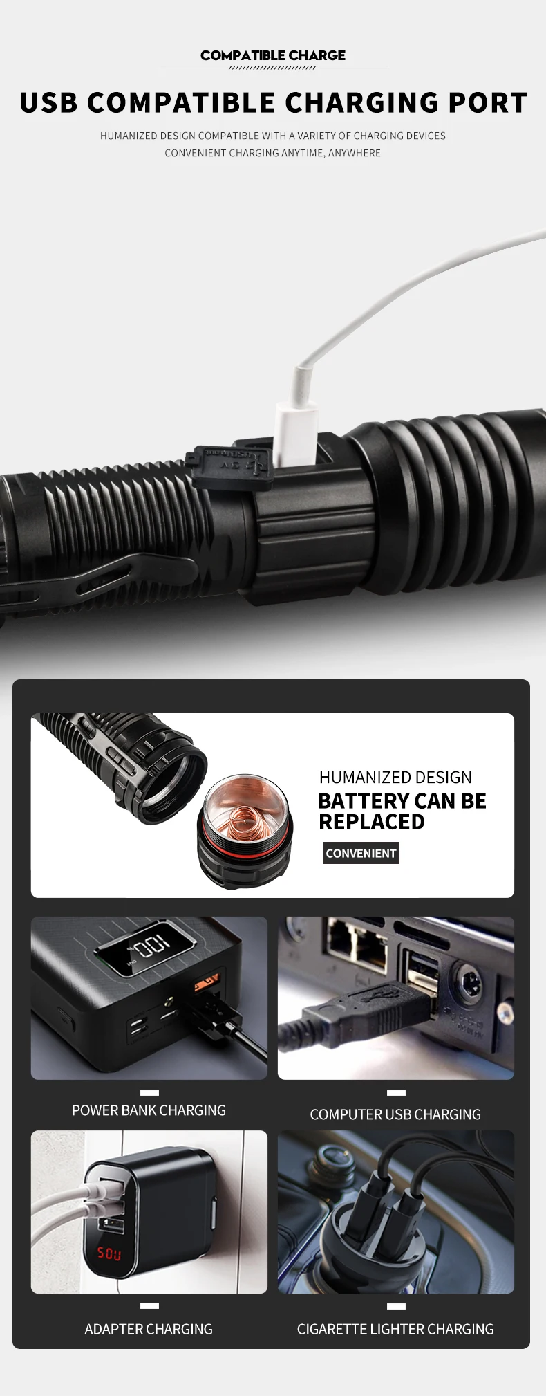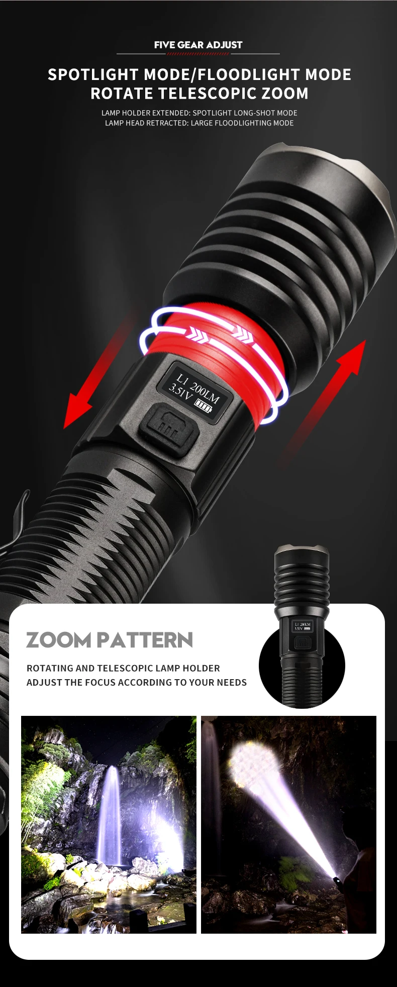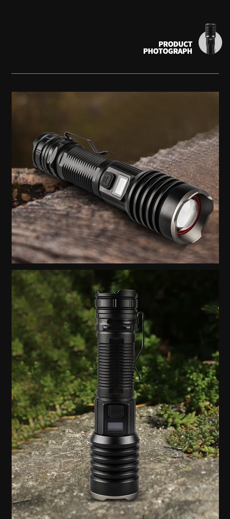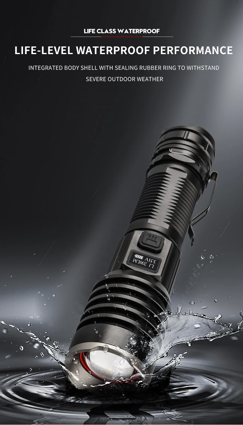 * С использованием 16 лампочек P160 Максимальный световой поток достигает 6800, максимальное расстояние освещения превышает 500 метров, а яркость превышает яркость автомобильных фар. Это ваш лучший выбор для приключений на открытом воздухе, кемпинга и пеших прогулок.* С умным ЖК-дисплеем, мощностью дисплея, яркостью дисплея. Когда батарея низкая, ее необходимо заряжать вовремя, чтобы избежать повреждения батареи.* Поверхность жесткая анодированная, износостойкая, анти-капля и антикоррозийная. На хвосте есть молоток безопасности, который может легко сломать стекло.
