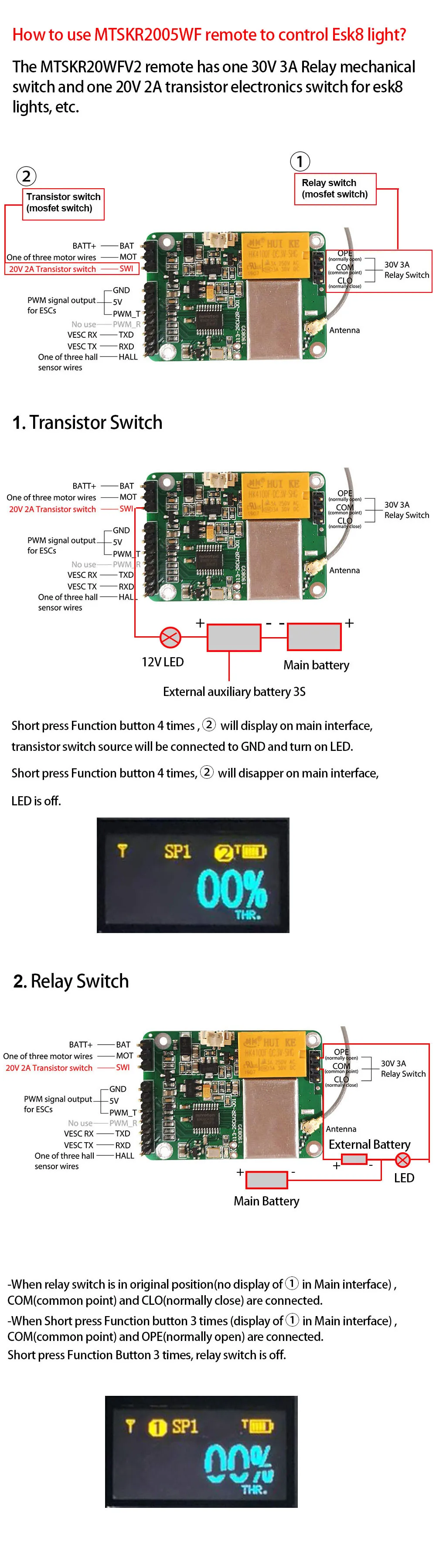 Built-in Transistor switchelectronic 20V2A for esk8 lights