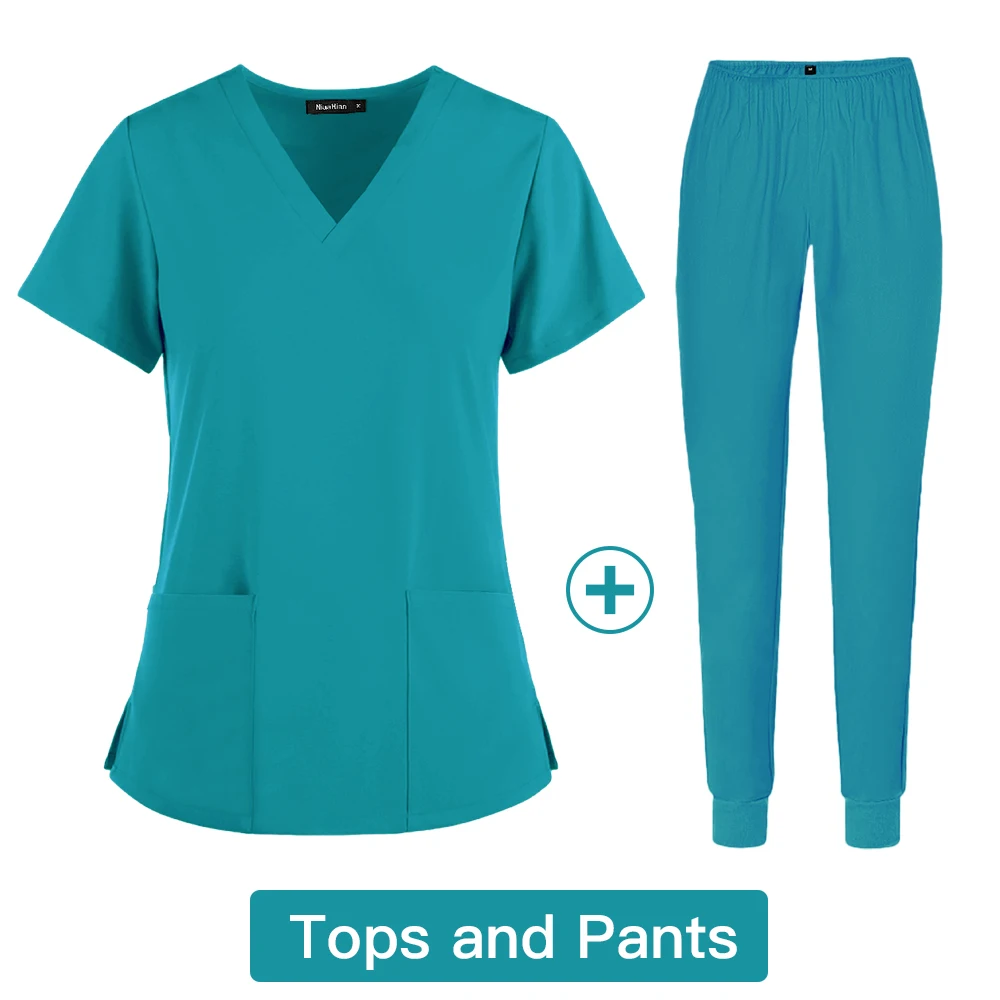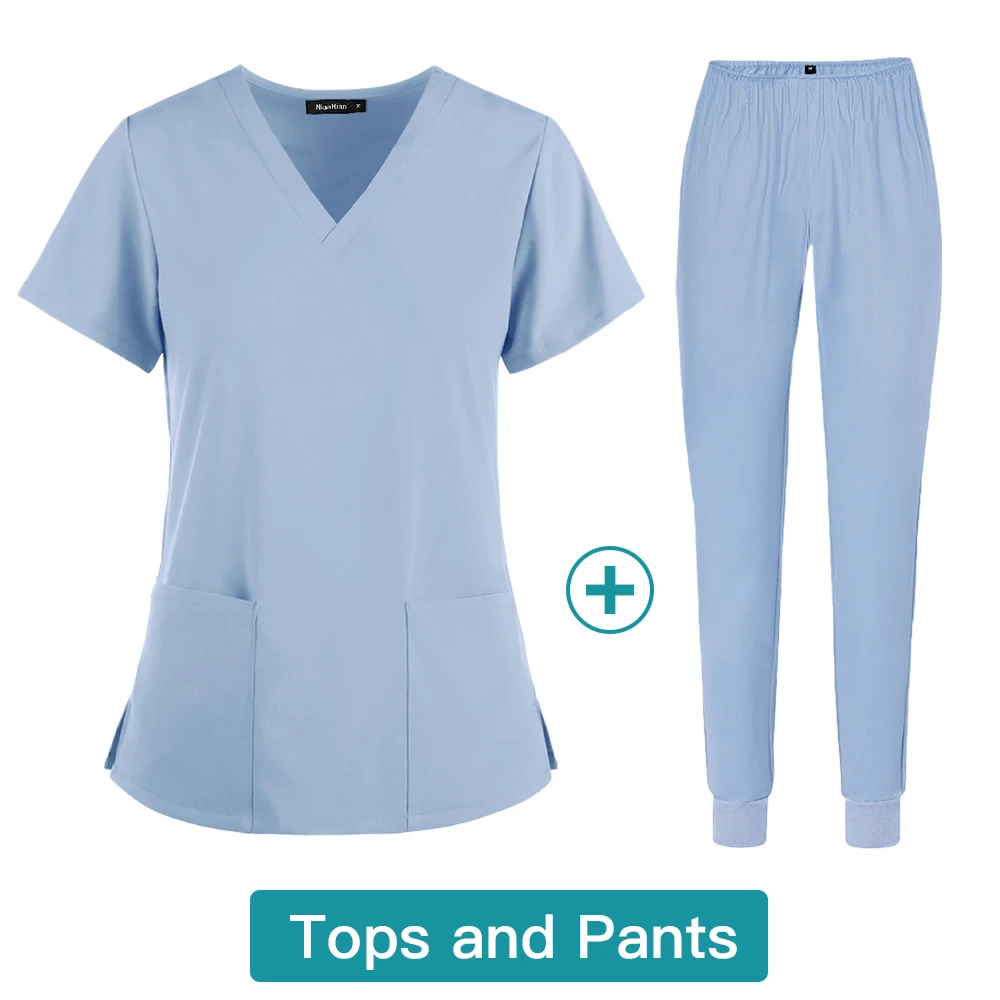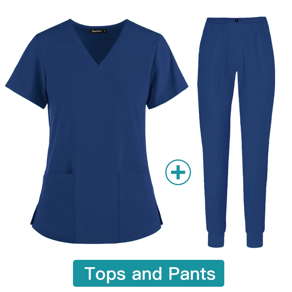 Костюм унисекс из скраба для женщин, комплект одежды для бега, топ и штаны, униформа больничного врача, ухода за детьми, однотонная хирургическая рабочая одежда с V-образным вырезом