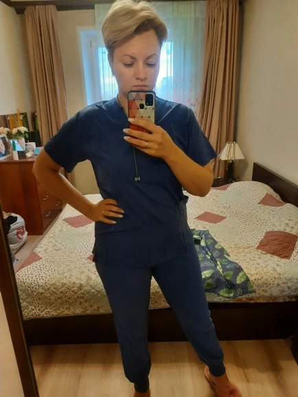 На мой взгляд, это не предназначено для медицинских работников, я не замечал, что материал-полиэстер. Приятно на связи, но я не уверен, смогу ли я постирать его при высокой температуре :( как я могу его гладить? Он мягкий и легкий. Это не хлопок!