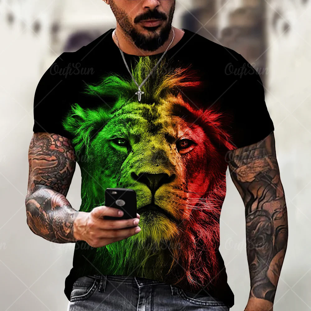 Футболка мужская оверсайз с 3D-принтом льва, модная уличная одежда ...