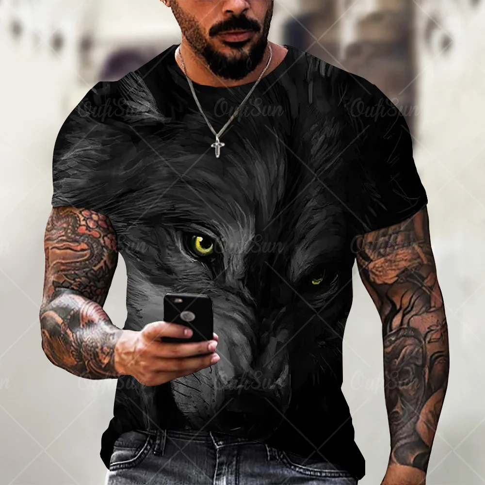 Футболка мужская с 3D-принтом льва и животного, модная уличная одеж...