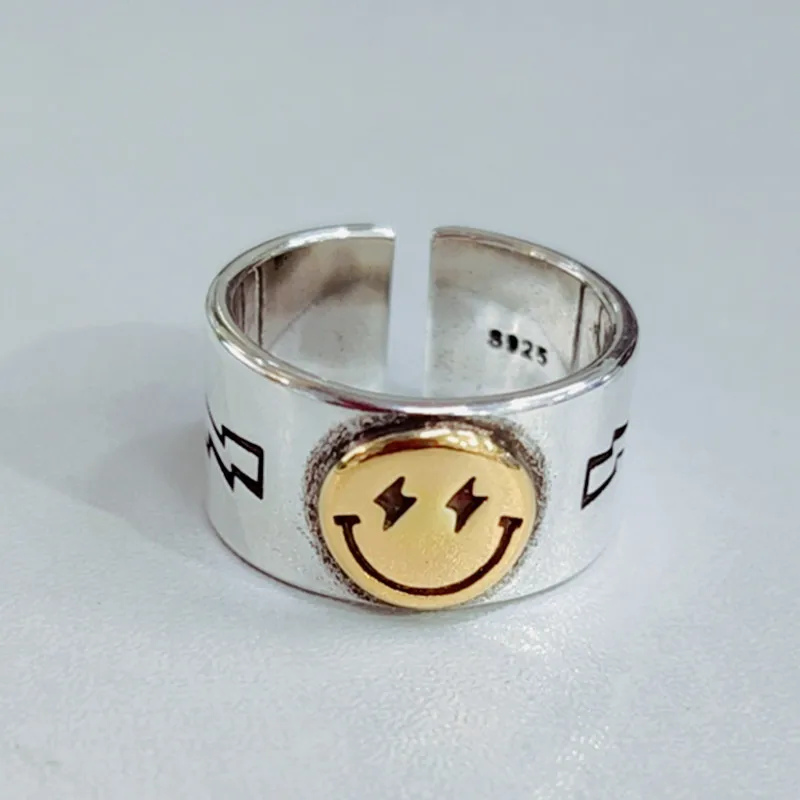 Винтажные панковские открытые кольца с милым улыбающимся лицом для женщин и женщин, очаровательные ювелирные изделия в стиле преппи, мужское кольцо на костяшки, модные подарки вечерние, оптовая продажа