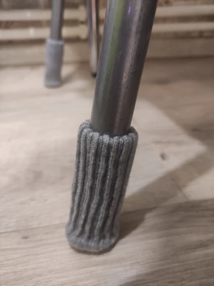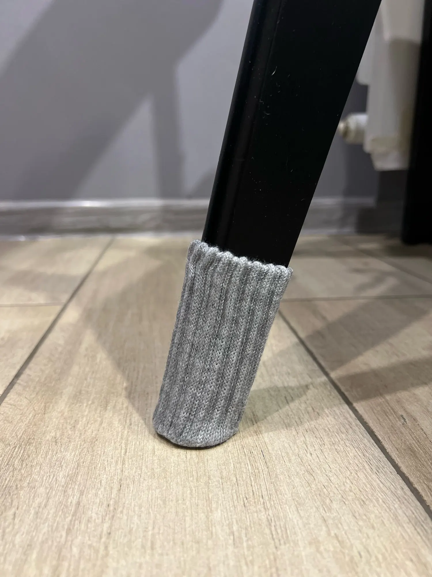 Материал высокого качества: напольные протекторы для ног стула изготовлены из полиэстера. Двойные уплотненные, плотно прилегающие и эластичные, высокая плотность, прочный и может растягиваться, противоскользящие, держать носки плотно закрывают ногу.