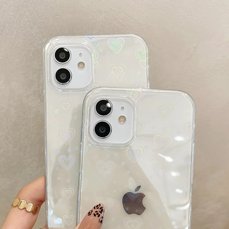 Прозрачный чехол для iPhone 13 12 11 Pro Max X XS XR 7 8 Plus с градиентным лазером и сердечком, ударопрочный бампер, блестящая задняя крышка
