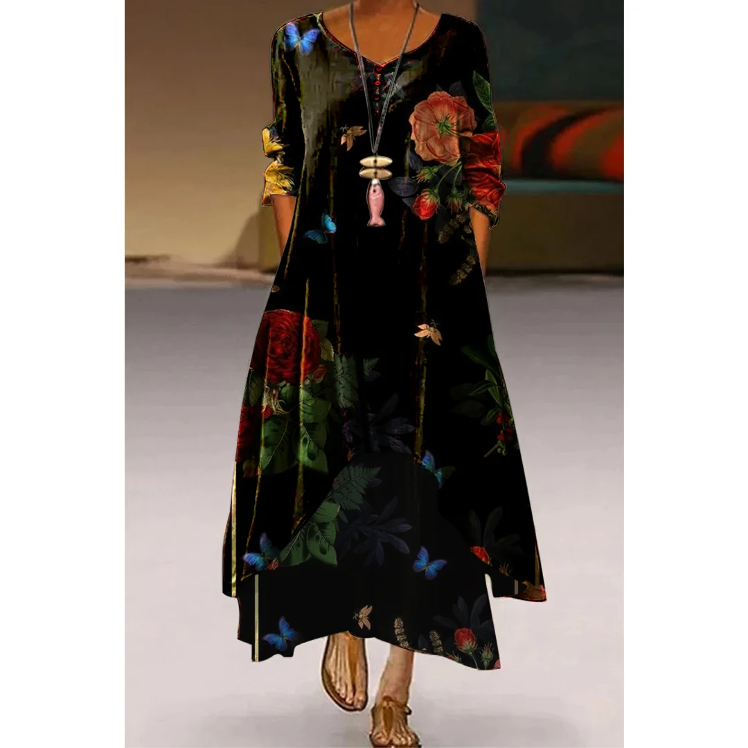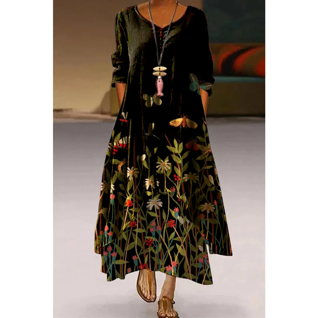 Женское платье с цветочным принтом, длинное Повседневное платье в стиле ретро, осень 2021
